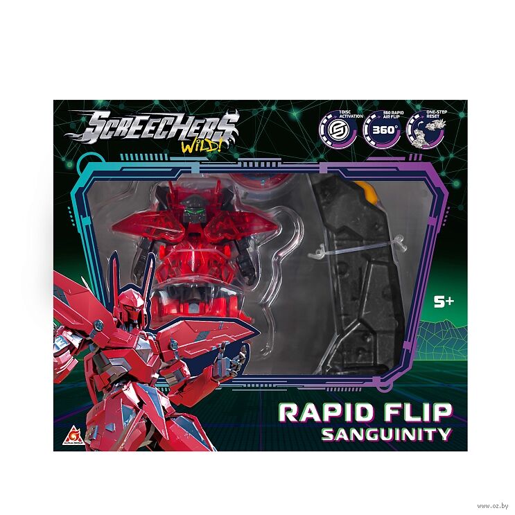 Скричер линейки Рэпидфлип трансформируется, совершая кувырок на 360°. Обратно в машинку игрушка собирается вручную, одним движением!