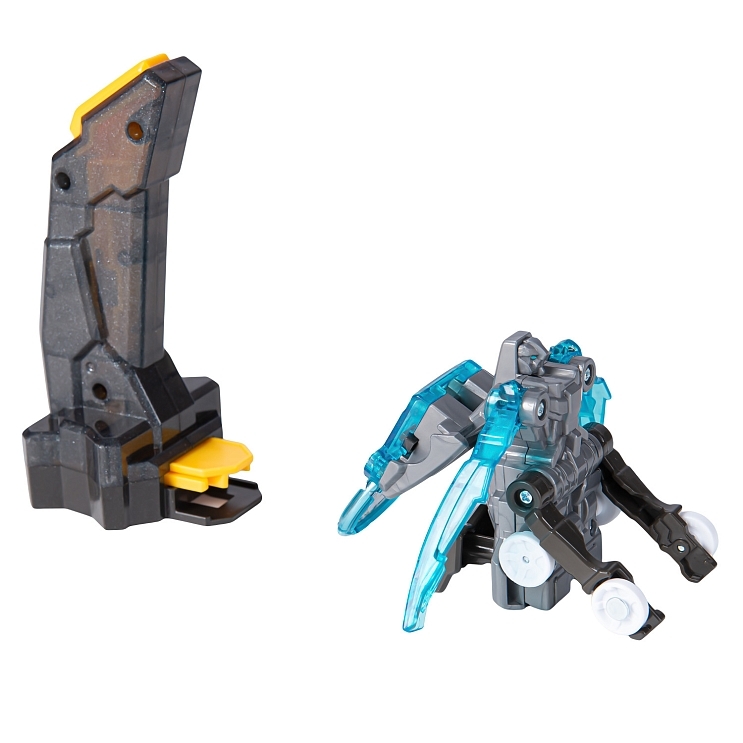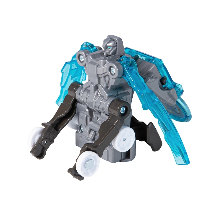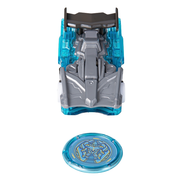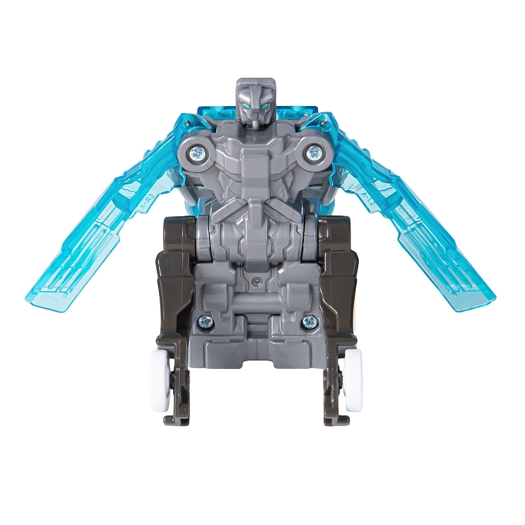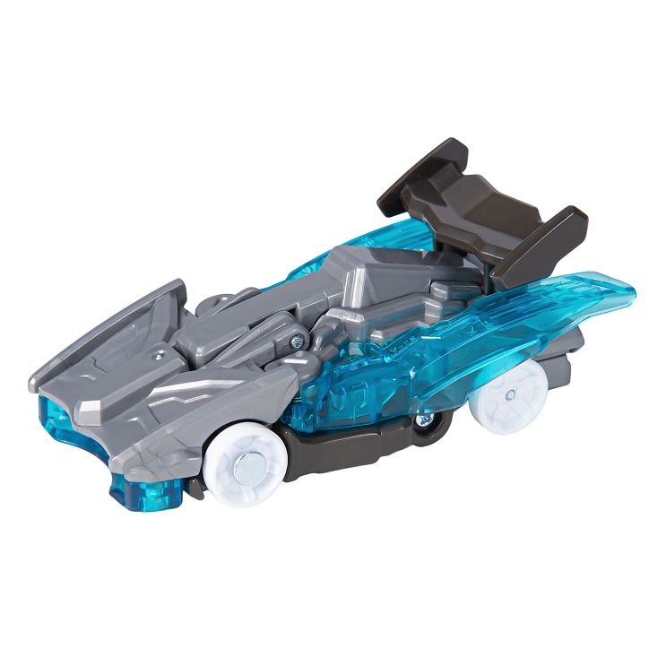 В набор входит машинка-трансформер (7х8х11 см), пусковая установка Лончер (13х6х5 см), энергетический диск, инструкция, наклейки. Игрушка упакована в коробку с окном 17х20х8 см.
