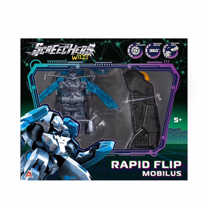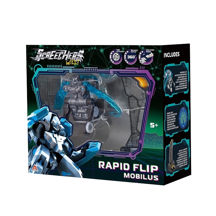 Скричер линейки Рэпидфлип трансформируется, совершая кувырок на 360°. Обратно в машинку игрушка собирается вручную, одним движением!