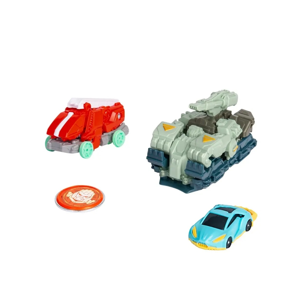В набор входит машинка-трансформер L2 (10х6х10 см), машинка-трансформер 720 (12х5х4 см), энергетический диск, скричер-кар, инструкция. Размер чемодана-базы 30х29х8 см.