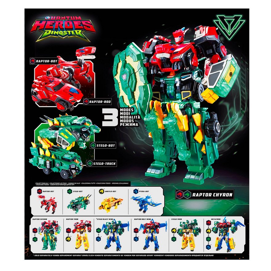 Запускай интеграцию! Раптор Кайрон, прибавь обороты! Набор Трансформер 4 в 1 Раптор Кайрон состоит из Стего-трака и Раптор-трака , которых можно трансформировать в двух Дино-ботов. У Трансформера три режима игры – играйте Дино-траками, пересоберите их в Дино-ботов или трансформируйте обратно в Дино-робота.