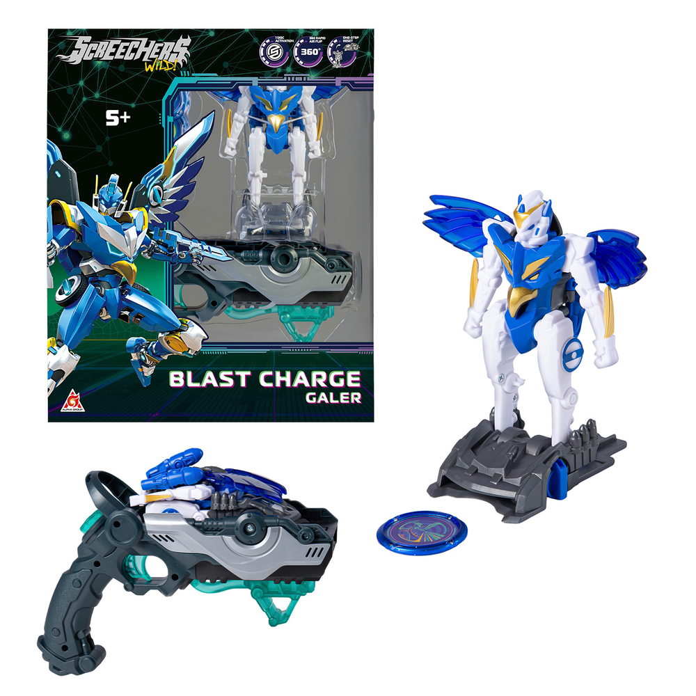 Будь готов к любым вызовам с линейкой Кибер Бласт Чардж! Скричер-Бластер имеет 2 режима игры: стреляй дисками и запускай Скричера! Поймав диск, твой Скричер сделает кувырок на 360° и трансформируется! Стань настоящим Кибер-стражем и покажи всем, на что ты способен!