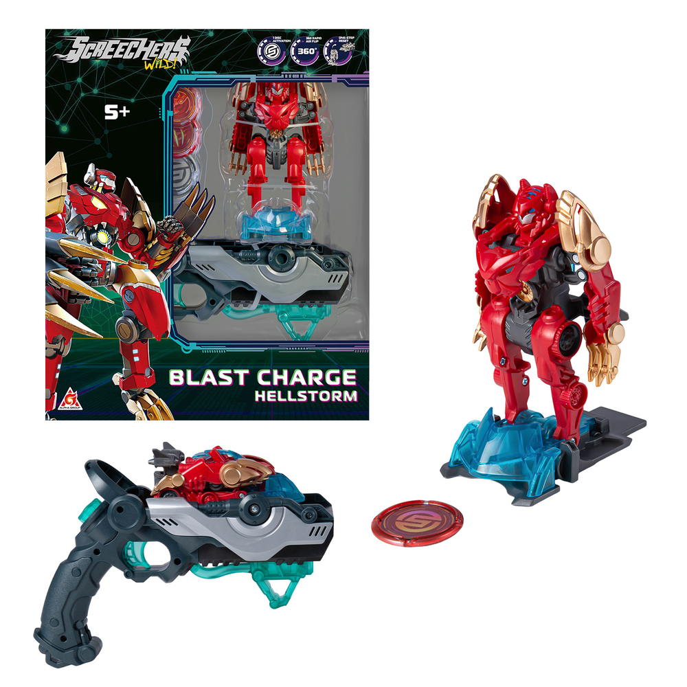 Будь готов к любым вызовам с линейкой Кибер Бласт Чардж! Скричер-Бластер имеет 2 режима игры: стреляй дисками и запускай Скричера! Поймав диск, твой Скричер сделает кувырок на 360° и трансформируется! Стань настоящим Кибер-стражем и покажи всем, на что ты способен!
