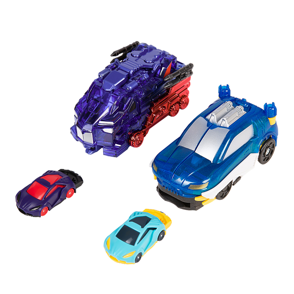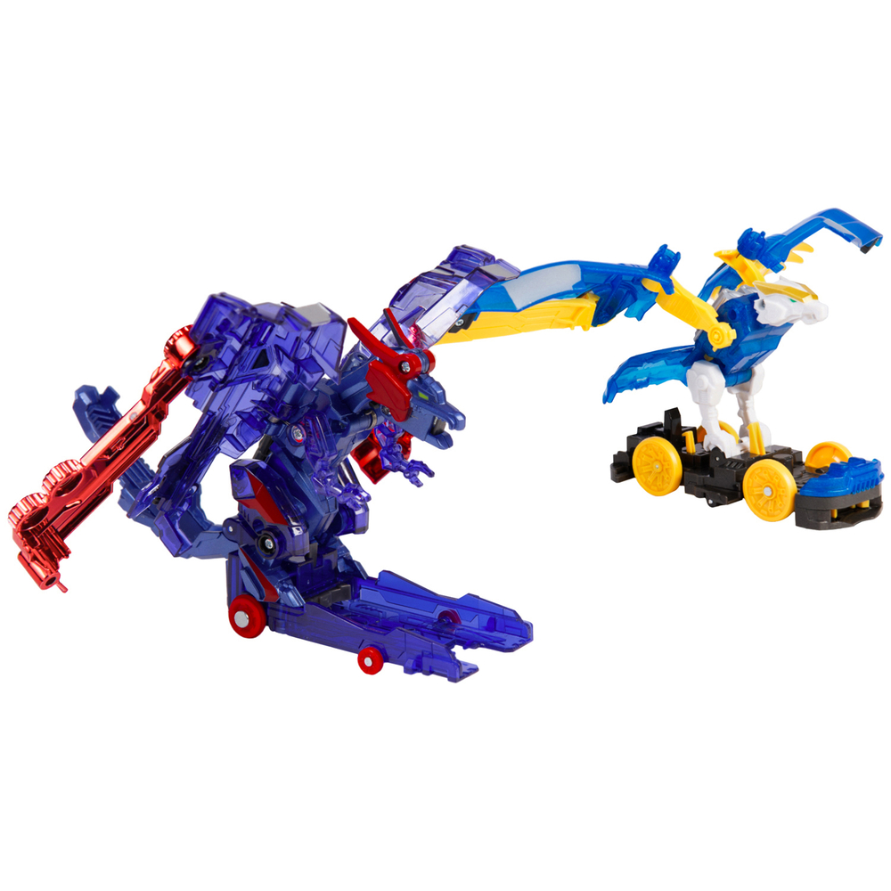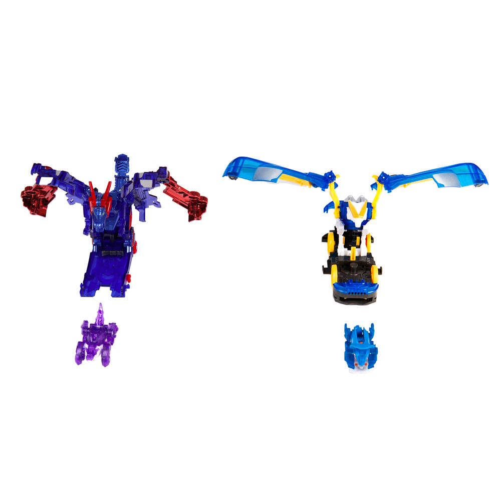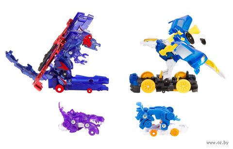 В наборе: машинка-трансформер Даркбласт Дрэгон (12х29х18 см), машинка-трансформер Лайтнинг Игл L4 (29х11х15 см), 2 энергетических диска, 2 скричер-кара, 2 минискричера, 2 коллекционных карточки, инструкция.