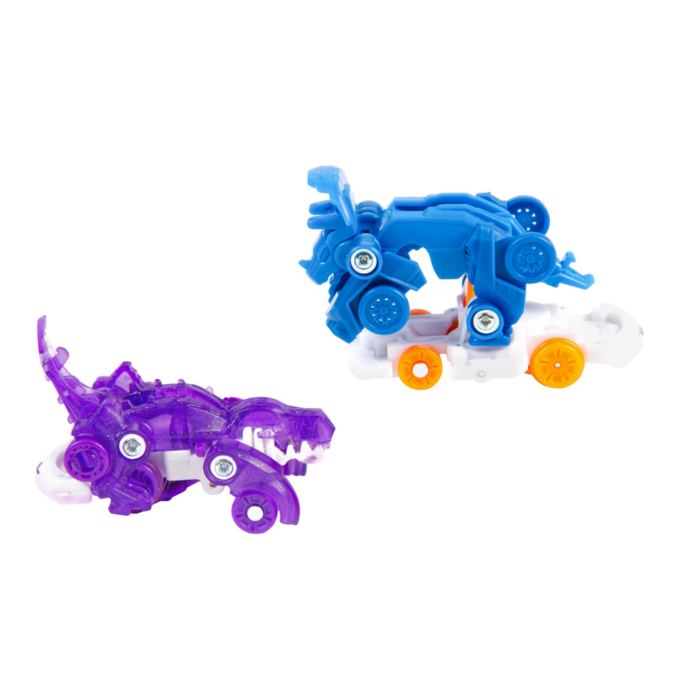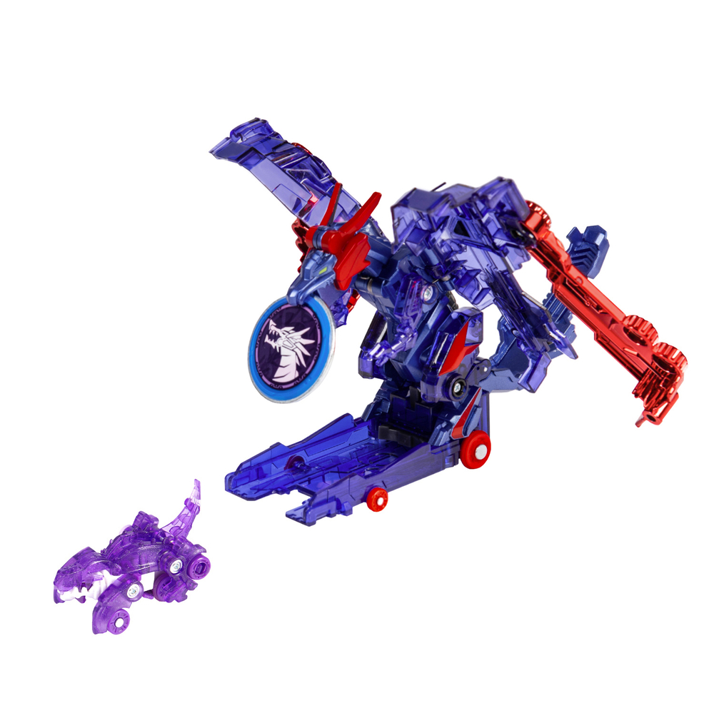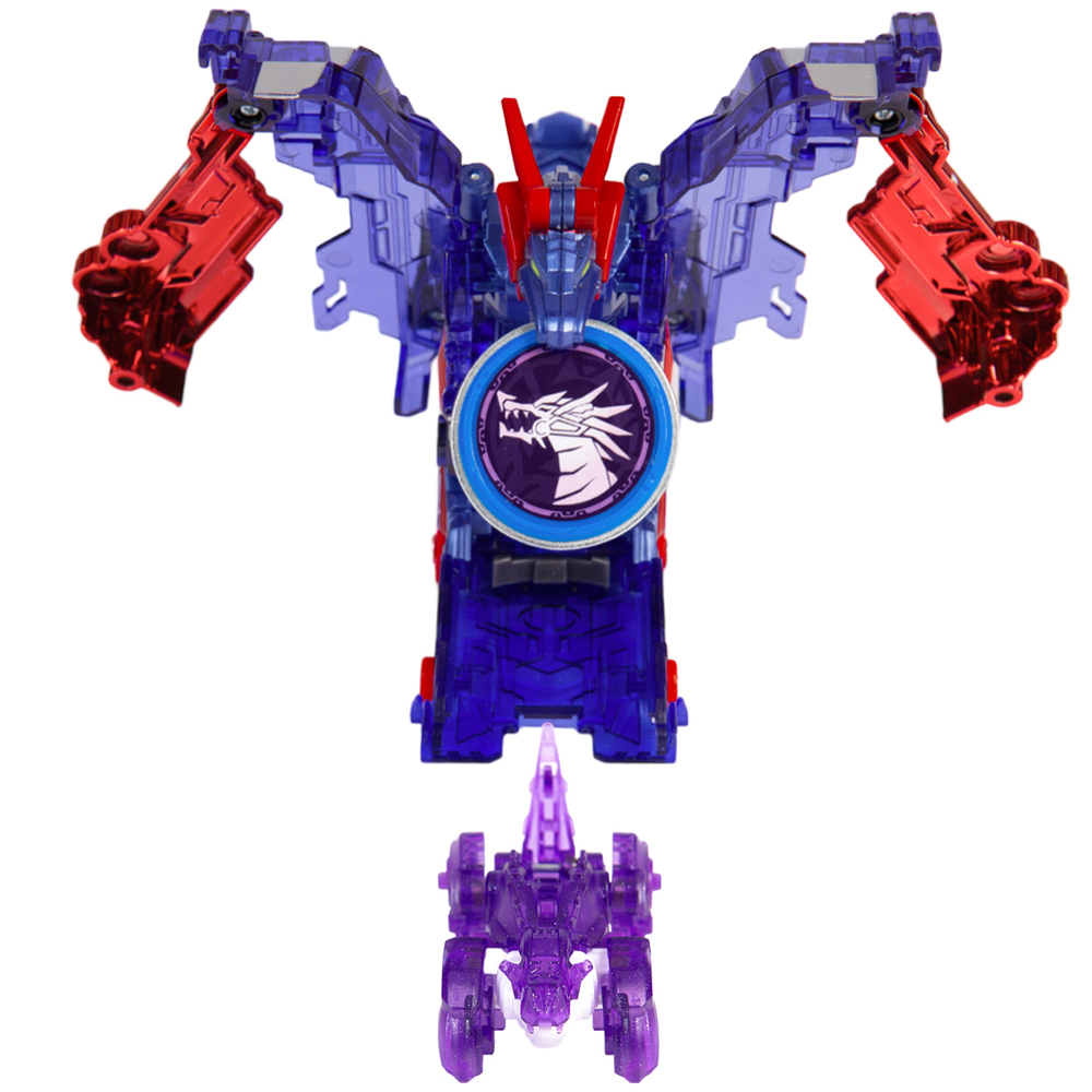 Основная фича Даркбласт Дрэгон – скрытая двойная трансформация, состоящая из 2 этапов! Даркбласт Дрэгон ловит диск или скричер-кар и выпускает его вперёд, затем раскрывается и активирует запуск второго скричера, спрятанного у себя внутри – уникального фиолетового минискричера, который трансформируется самостоятельно – проезжает и совершает кувырок на 360 градусов.