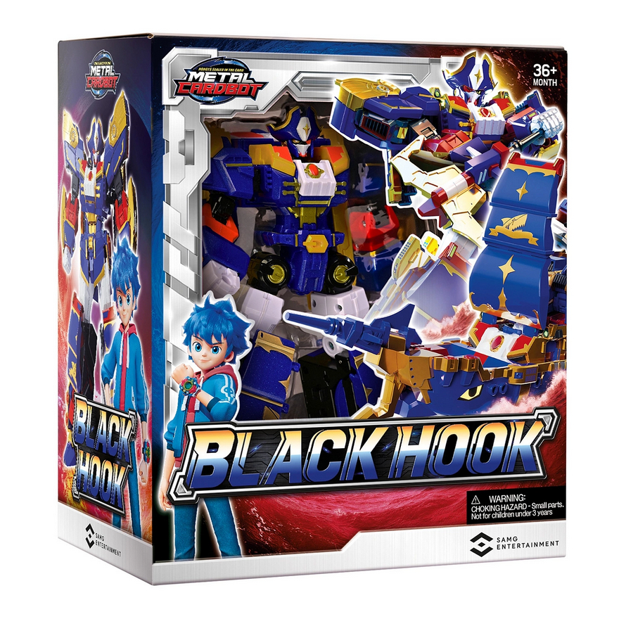 Капитан пиратов планеты Машина – Блэк Хук! Трансформируй его в пиратский корабль и не забудь про его персональное оружие-трансформер – Пиратскую Пушку! А еще на носу корабля закреплено дополнительно оружие – Черный Крюк. Блэк Хуку подвластны не только бескрайние морские просторы, но и небосвод – он один из немногих Кард Ботов, который способен летать даже при сильной гравитации.