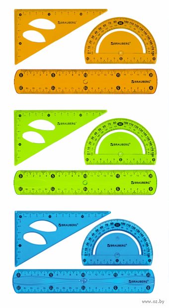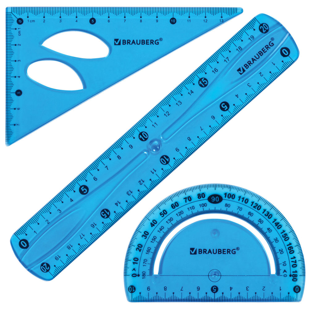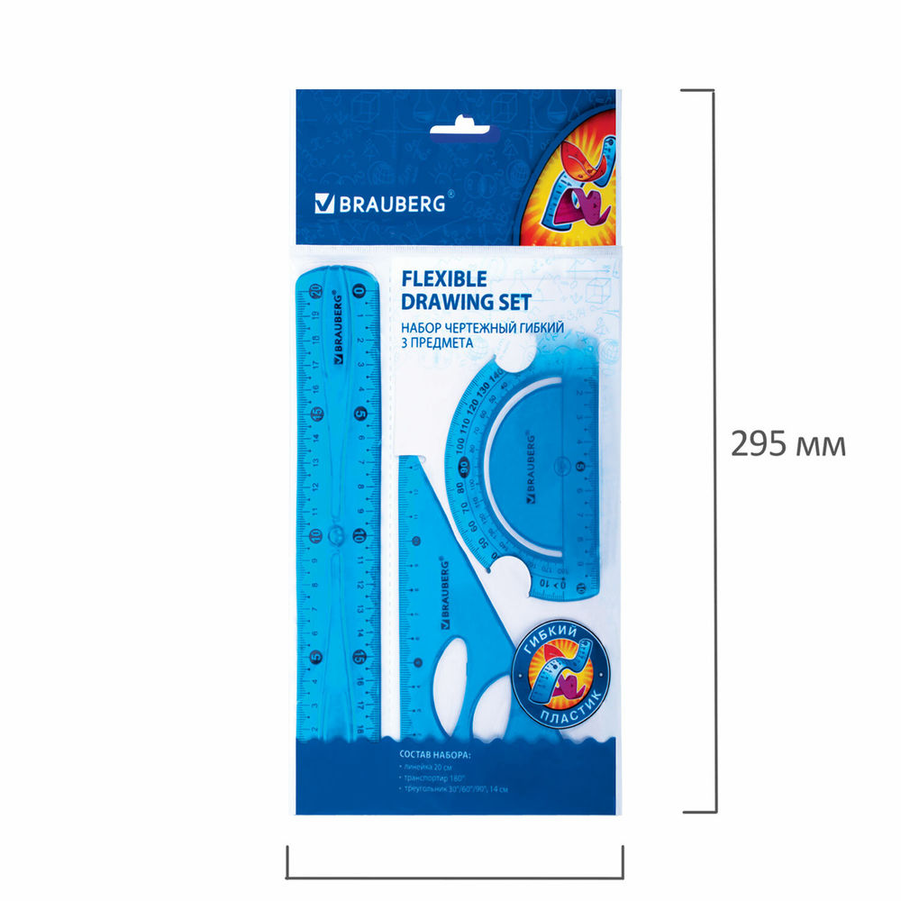 Гибкий ударопрочный набор чертежных инструментов Brauberg предназначен для чертёжных и измерительных работ.