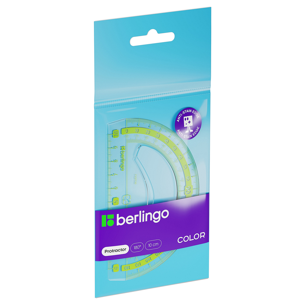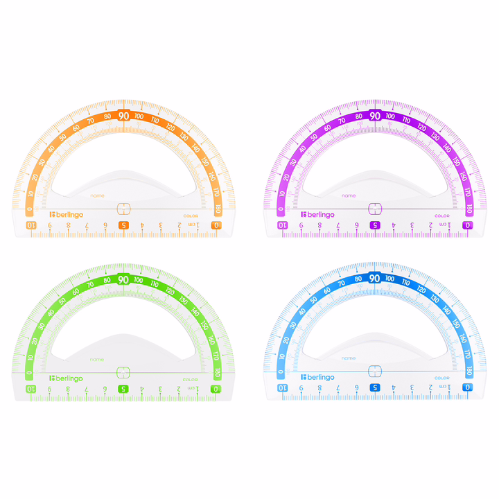 Транспортир пластиковый, 180 градусов, безопасные закругленные края, высококачественная градуировка с использованием УФ-чернил.