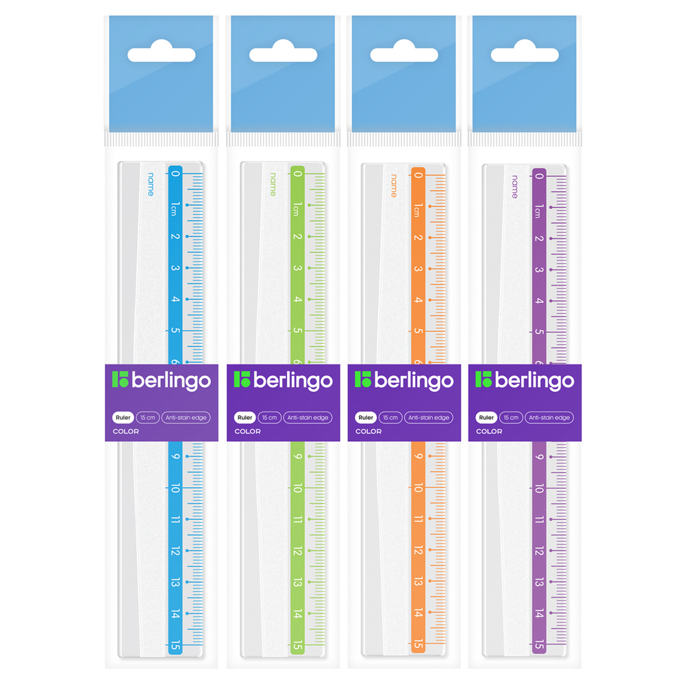 Линейка "Color" длиной 15 см. Высококачественная градуировка: нанесена с использованием УФ чернил для наилучшей устойчивости. Эргономичный дизайн: позволяет избежать смазанных линий при черчении, безопасные закругленные края.