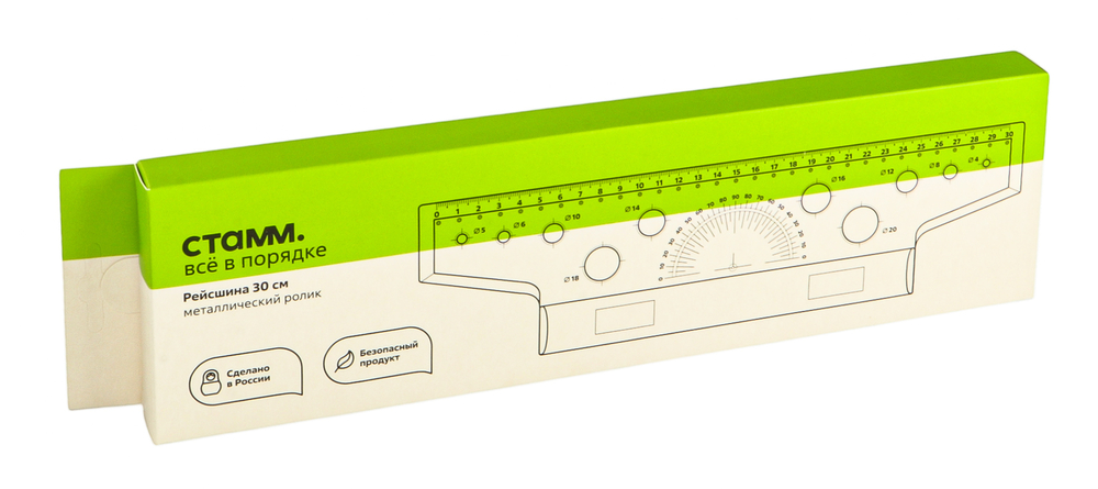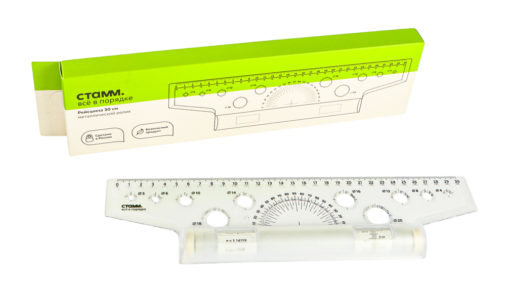 Изготовлена из качественного полистирола. Рейсшина упакована в картонную коробку с европодвесом.