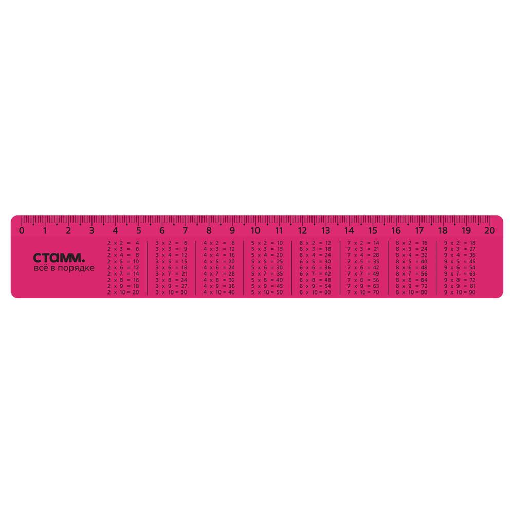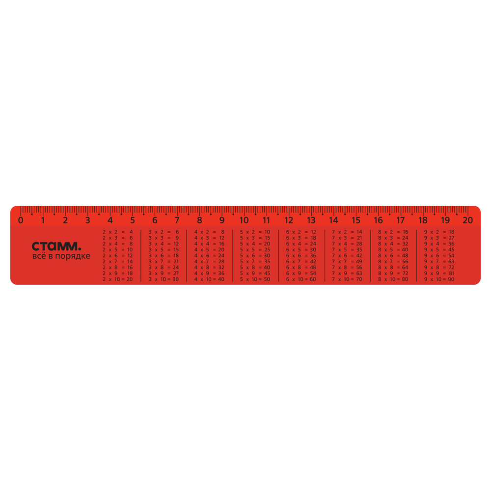 Линейка "Таблица умножения" предназначена для чертёжно-измерительных работ. Длина шкалы – 20 см, ширина линейки – 35 мм. Изделие имеет безопасные закруглённые края и чёткую контрастную миллиметровую шкалу.