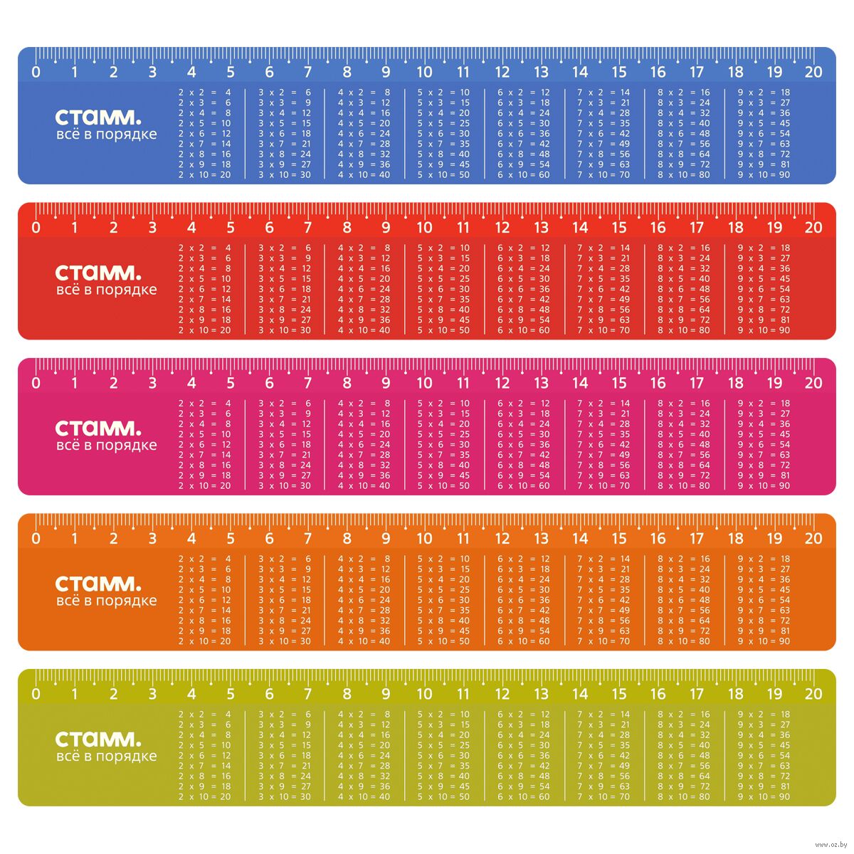 Линейка пластиковая "Таблица умножения" (20 см)
