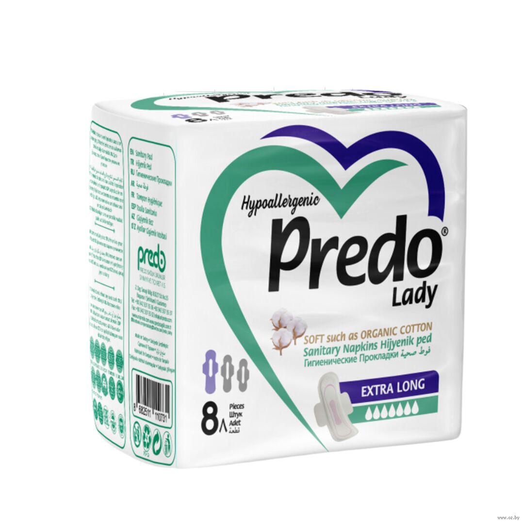 Гигиенические прокладки с крылышками "Predo Lady Extra Long" для обильных выделений. Верхний слой прокладки мягкий, как натуральный хлопок, дает дополнительный комфорт при использовании. Благодаря внутреннему слою, превращающему жидкость в гель, обладает превосходными впитывающими свойствами, защищает от протеканий.