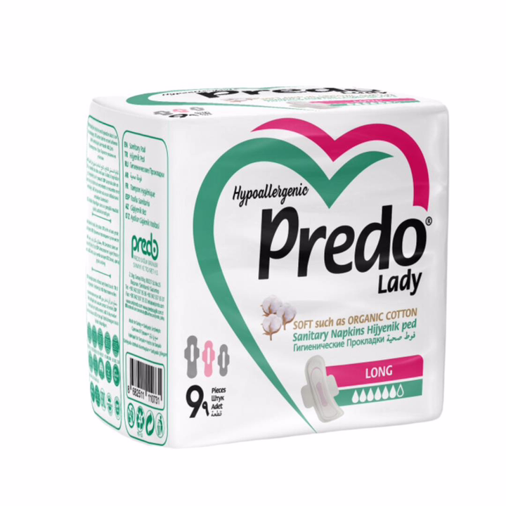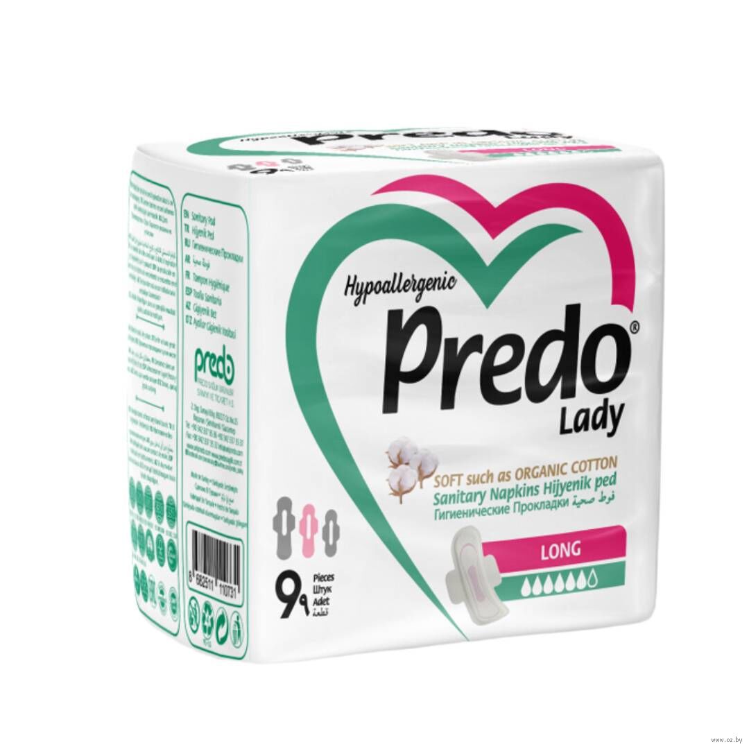 Гигиенические прокладки с крылышками "Predo Lady Long" для обильных выделений. Верхний слой прокладки мягкий, как натуральный хлопок, дает дополнительный комфорт при использовании. Благодаря внутреннему слою, превращающему жидкость в гель, обладает превосходными впитывающими свойствами, защищает от протеканий.