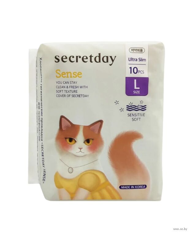 Хлопковые гигиенические прокладки для критических дней. Интенсивное впитывание. Мягкие крылышки надежно фиксируют прокладку к белью и не вызывают раздражения.