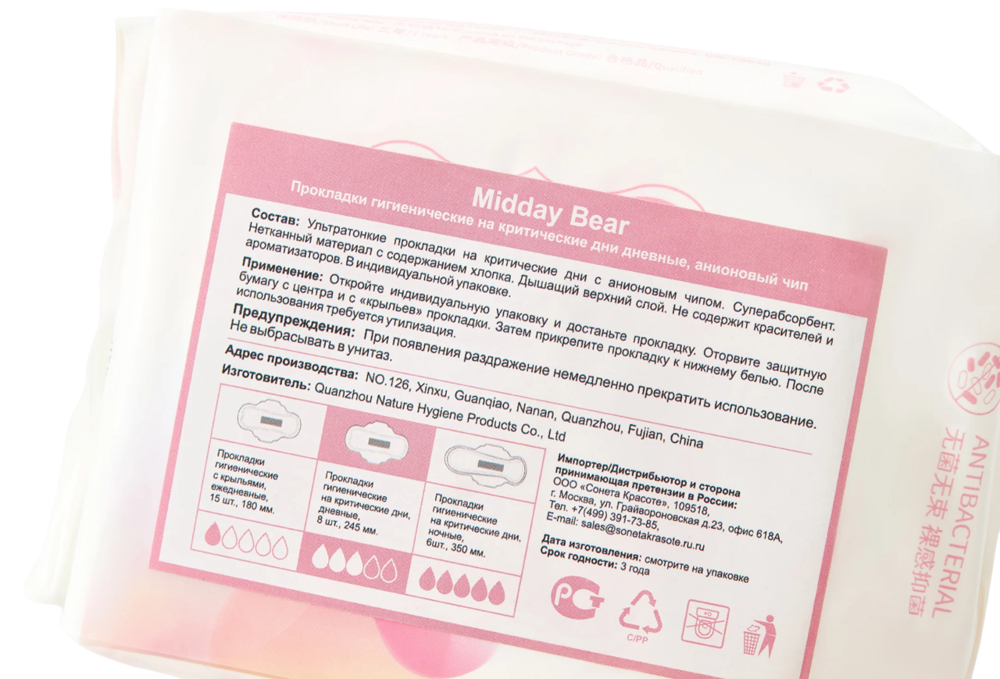 Midday Bear представляет прокладки, произведенные с использованием высококачественных материалов, которые обеспечивают комфортную и безопасную использование. Гипоаллергенная основа прокладок предотвращает раздражение и аллергические реакции, делая их подходящими даже для самой чувствительной кожи.