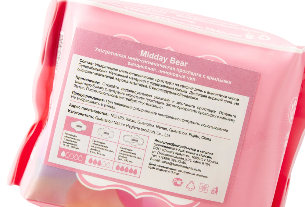 Midday Bear представляет прокладки, произведенные с использованием высококачественных материалов, которые обеспечивают комфортную и безопасную использование. Гипоаллергенная основа прокладок предотвращает раздражение и аллергические реакции, делая их подходящими даже для самой чувствительной кожи.