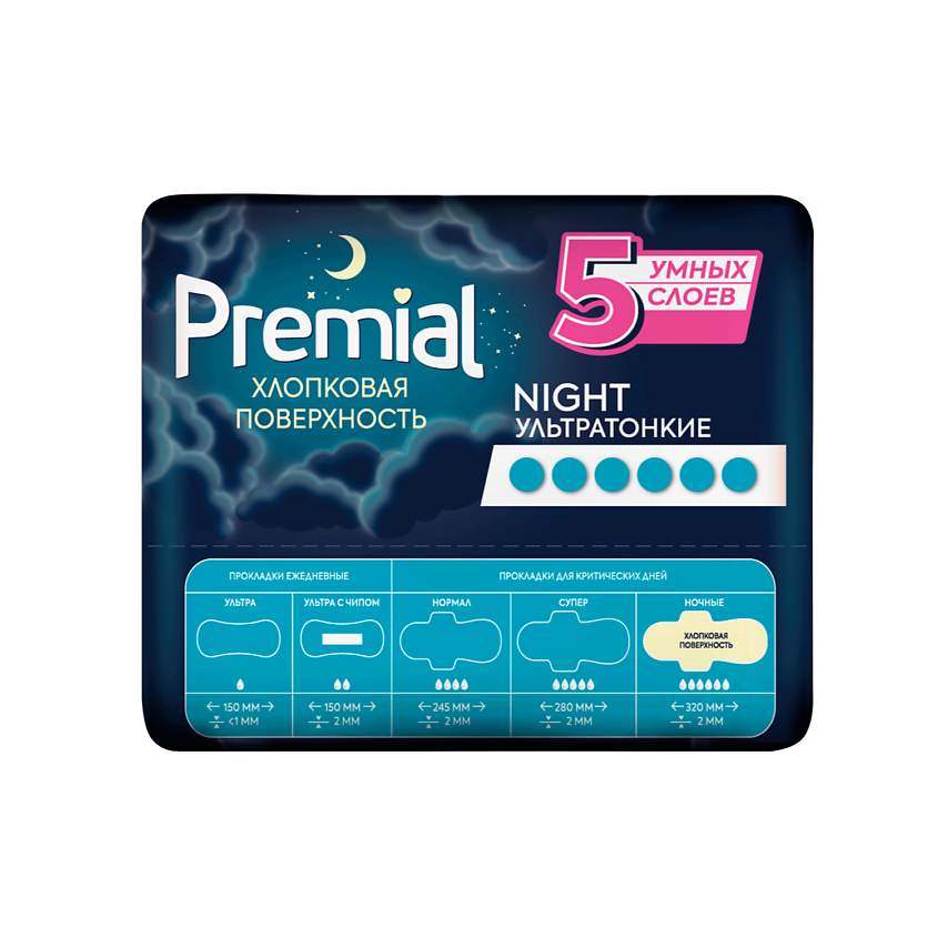 Ультратонкие гигиенические прокладки 2 мм толщиной – c крылышками, ночные для обильных выделений (6 капелек).
