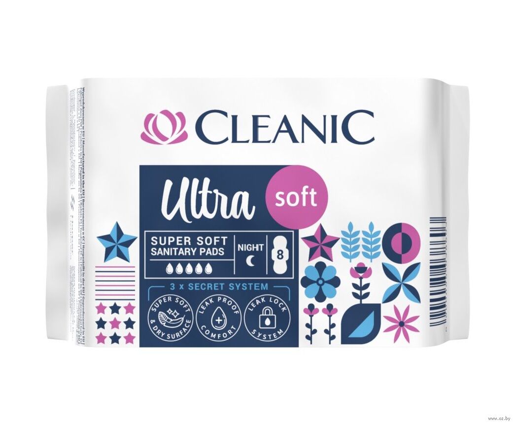 Прокладки гигиенические Cleanic Ultra soft Night ночные женские, 8 штук – надежная защита и комфорт во время ночного отдыха.