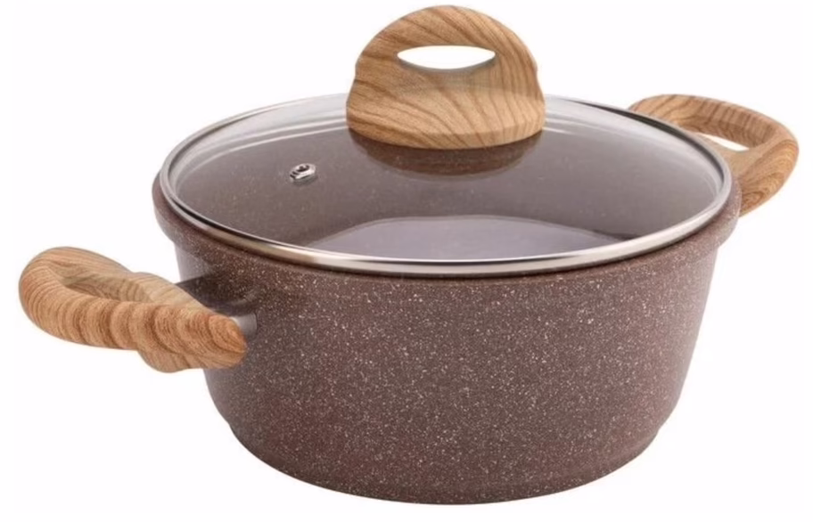 В комплект входит стеклянная крышка с ободком из нержавеющей стали. Подходит для всех плит: для газовой, стеклокерамической и электрической плиты, кроме индукционной плиты. Можно использовать в посудомоечной машине. Кастрюля является незаменимой на кухне. В ней можно приготовить много интересных блюд: наваристые супы, соусы, тушеное мясо и даже десерты. Сверхпрочное антипригарное покрытие отличается особой износостойкостью и превосходными антипригарными свойствами, рассчитано на интенсивное использование в течение длительного срока. Кухонная посуда из цельнолитого алюминия хорошо проводит температуру, не окисляется при взаимодействии с продуктами и не выделяет вредных веществ. Кастрюля для варки с антипригарным покрытием, во избежание повреждения и нарушения свойств, нельзя чистить абразивными средствами, металлическими скребками, а также нельзя использовать кулинарные аксессуары из металла.