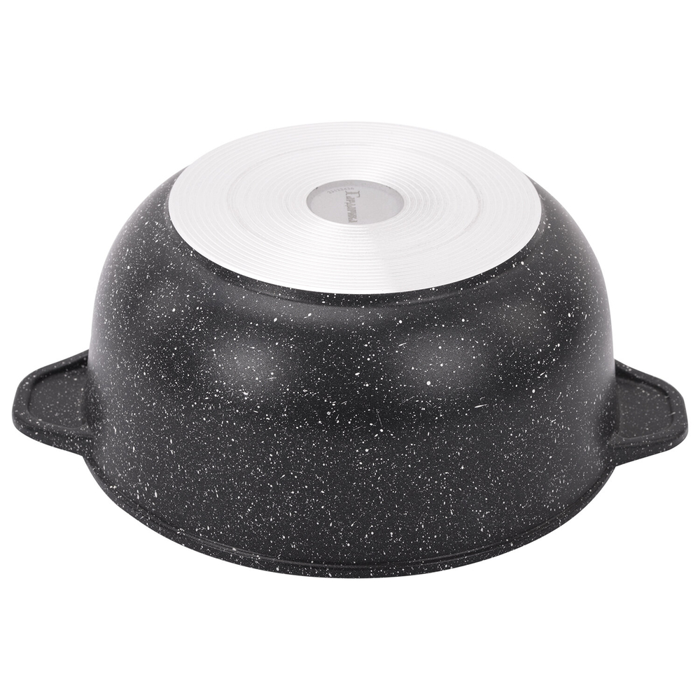 Массивное дно (6 мм) и стенки (3,5 мм) кастрюли не подвержены деформации, царапинам и сколам. Объем – 3 л. Размер крышки: 22 см.