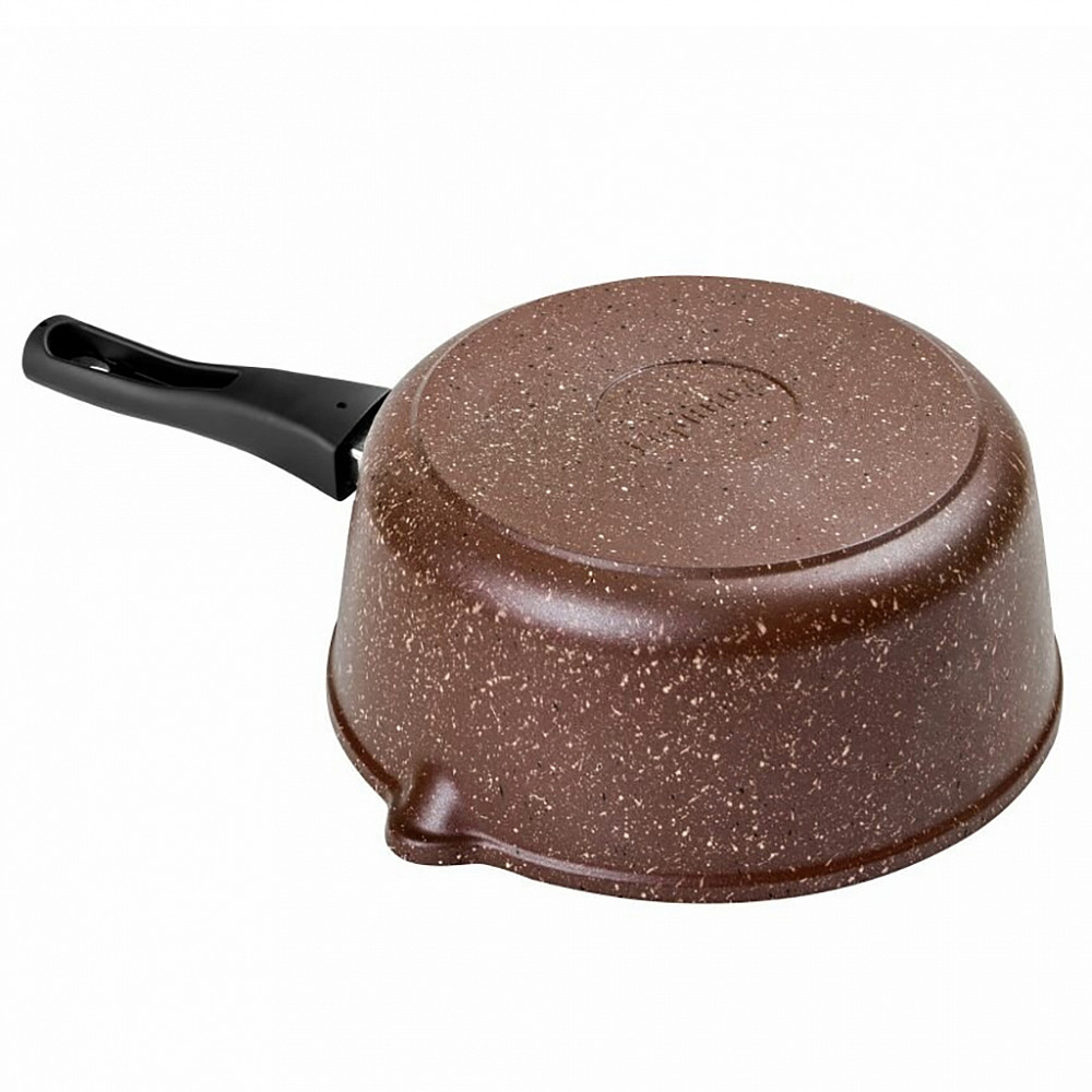 Коллекция посуды с улучшенным четырёхслойным антипригарным покрытием. Дополнительный слой с мраморным эффектом увеличивает износостойкость и создаёт оригинальный цветовой эффект мрамора шоколадного оттенка.