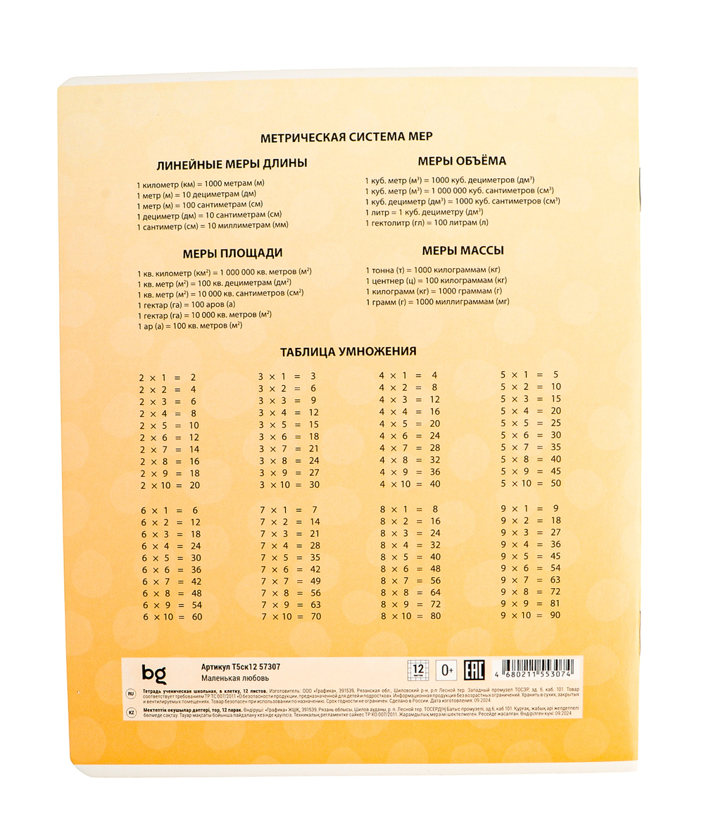 Тетрадь BG серии "Маленькая любовь" в клетку подходит для выполнения домашних и контрольных работ.