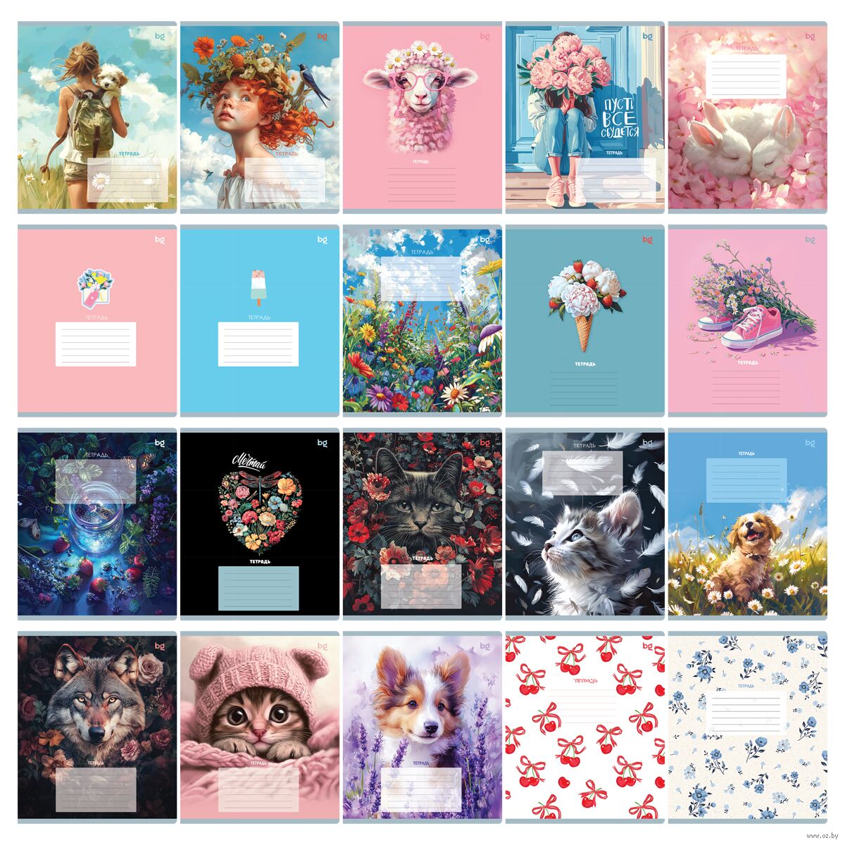 Обложка из мелованного картона защищает листы от замятий и повреждений. Поле для подписи поможет ребёнку найти свою тетрадь среди других. В комплект входит 20 тетрадей с разнообразными обложками, которые оценят школьницы.