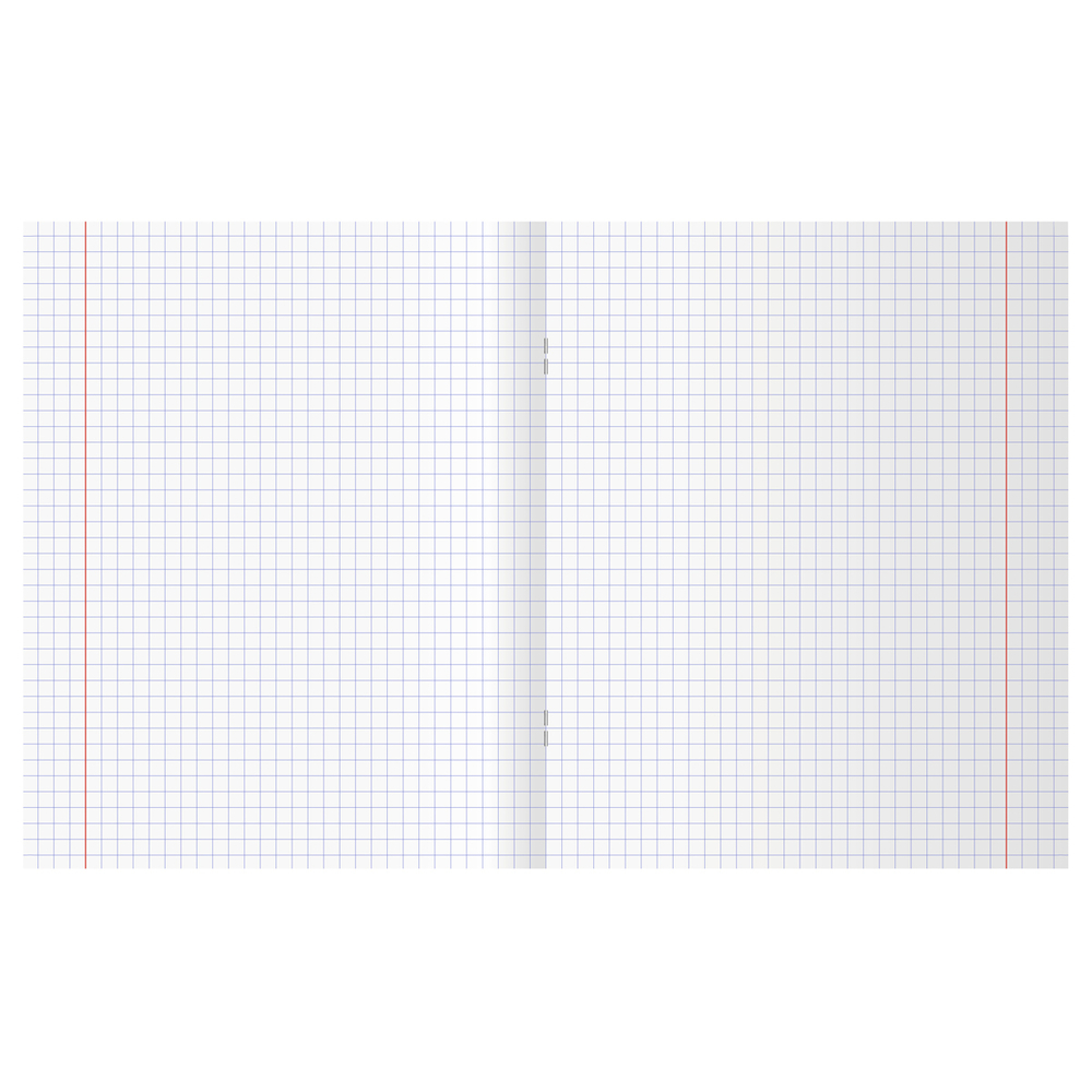 Внутренний блок состоит из 12 листов офсетной бумаги плотностью 60-65 г/м2. Белизна – 92 %. Линовка – клетка с полями. Обложка изготовлена из офсетной бумаги плотностью 80 г/м2. Скрепка надежно скрепляет листы между собой.