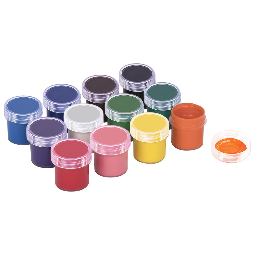 В наборе 12 ярких и насыщенных цветов: белый, красный, черный, синий, желтый, зеленый, коричневый, оранжевый, фиолетовый, светло-зеленый, голубой, розовый.