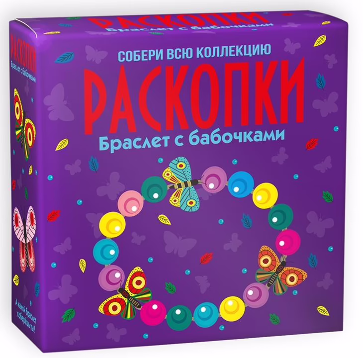 После нескольких минут увлекательных раскопок в бруске окаменелой породы вы найдете круглые бусины и бабочек. Посмотрите, как они сияют на солнце! А потом возьмите нитку и соберите браслет по своему вкусу. Теперь волшебные бабочки будут красиво сиять на вашем запястье. В наборе вы найдете удобный стек из дерева для быстрого поиска сокровищ.