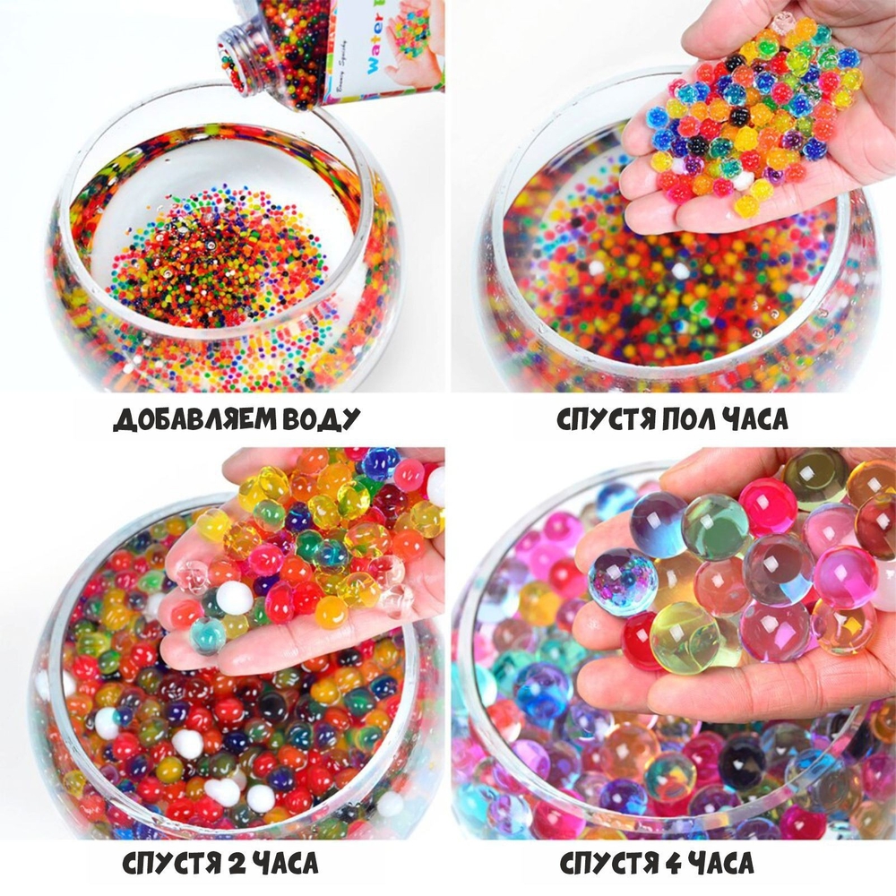 Цветные шарики, которые увеличиваются при погружении в воду, любопытны и забавны. В процессе игры ребёнок в простой и интересной форме узнает о свойствах воды и понаблюдает за ростом фигурок. Просто положите их в прозрачную ёмкость, залейте чистой водой и ждите результат.