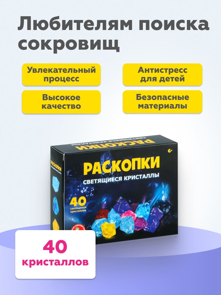 Станьте исследователем таинственных пещер! Начните своё приключение уже сейчас с набором "Светящиеся кристаллы" (40 штук) и откройте для себя тайны драгоценных кристаллов, которые светятся в темноте!
