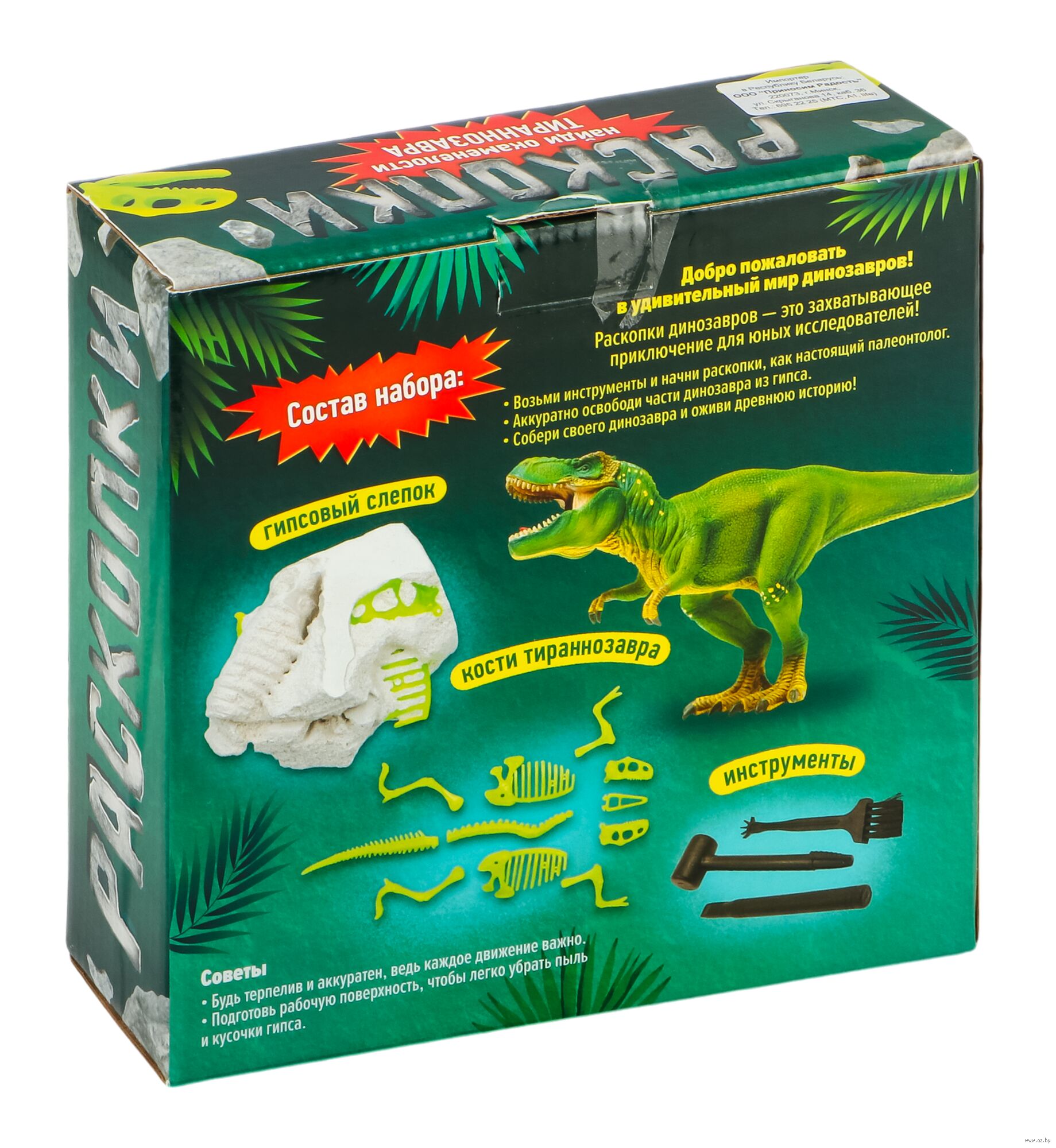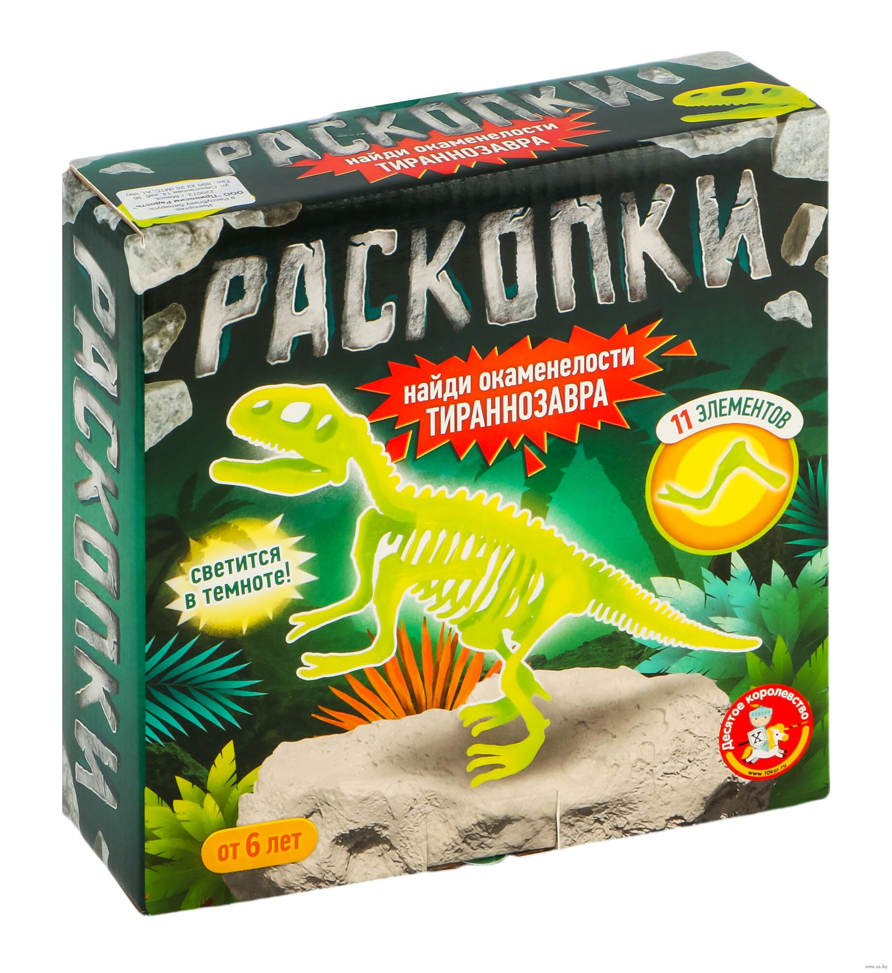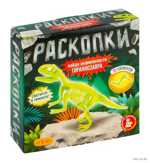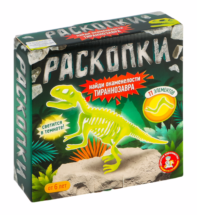 Раскопки "Найди окаменелости Тираннозавра" (11 элементов, светится в темноте).