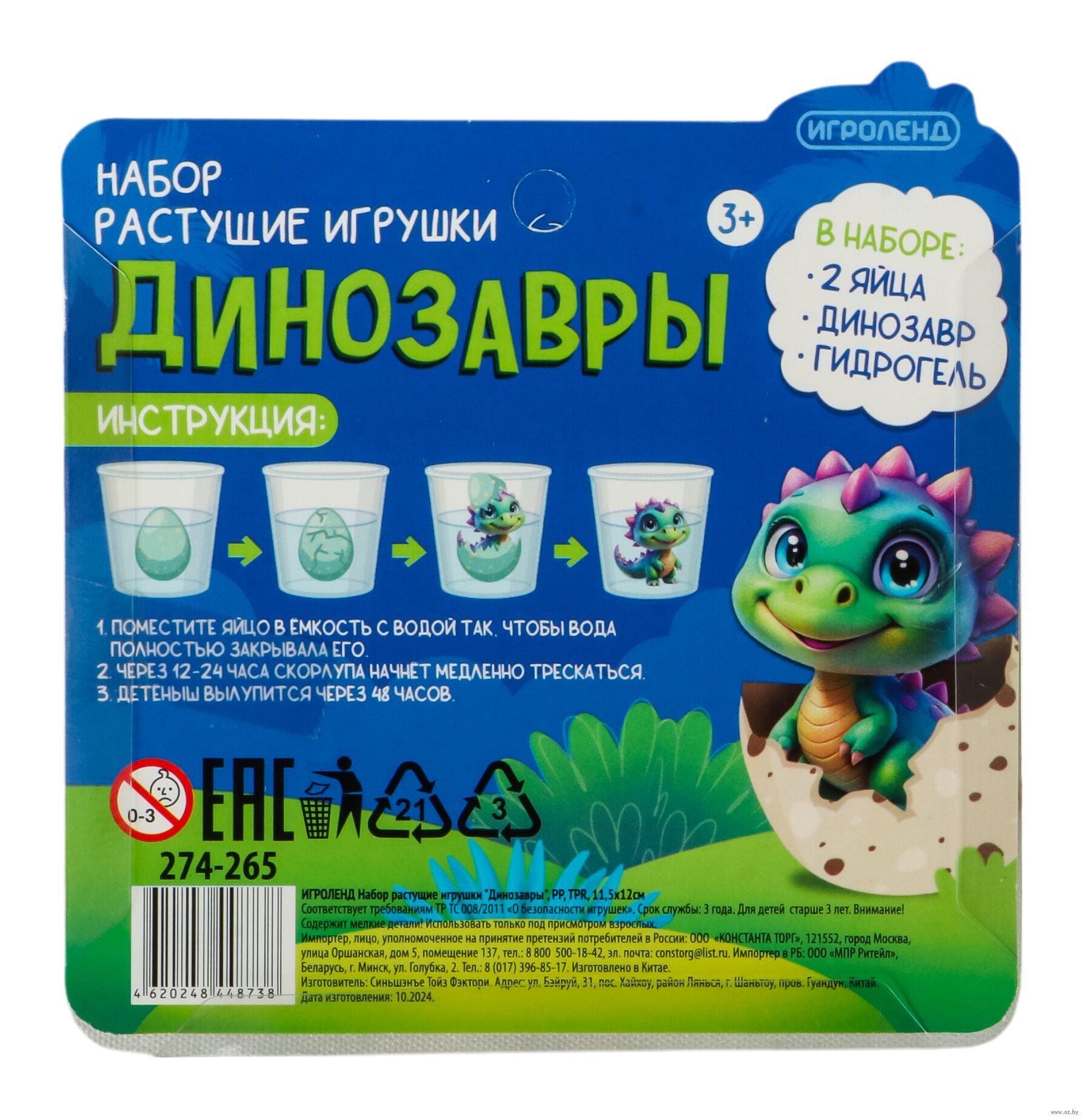 Набор растущие игрушки "Динозавры".