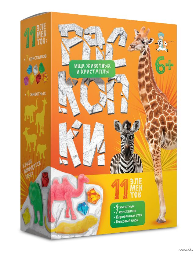 Набор раскопок для детей "Ищи животных и кристаллы" развивает концентрацию, внимательность, мелкую моторику и точность движений. Добытые артефакты можно использовать для других игр или для украшения интерьера.