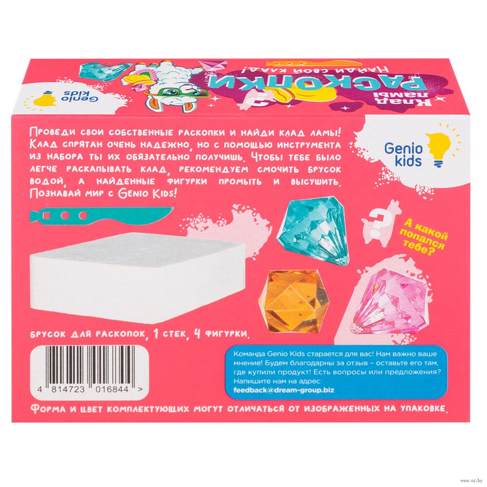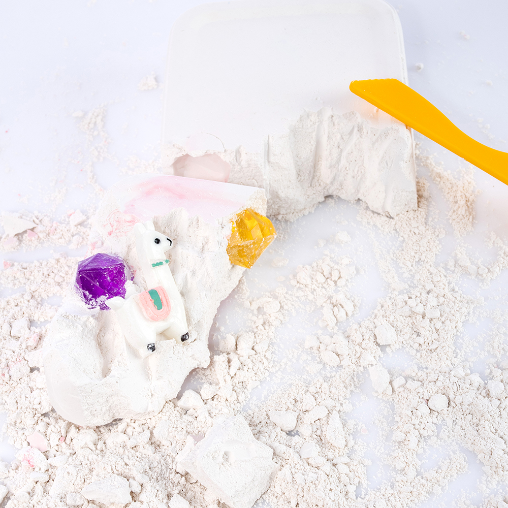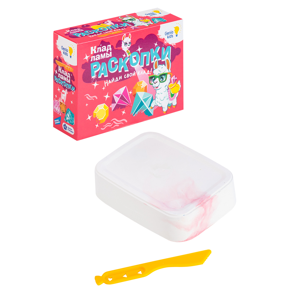 Брусок (7,5х10х3 см), в котором спрятано 1 фигурка ламы и 3 камня, 1 стек для раскопок