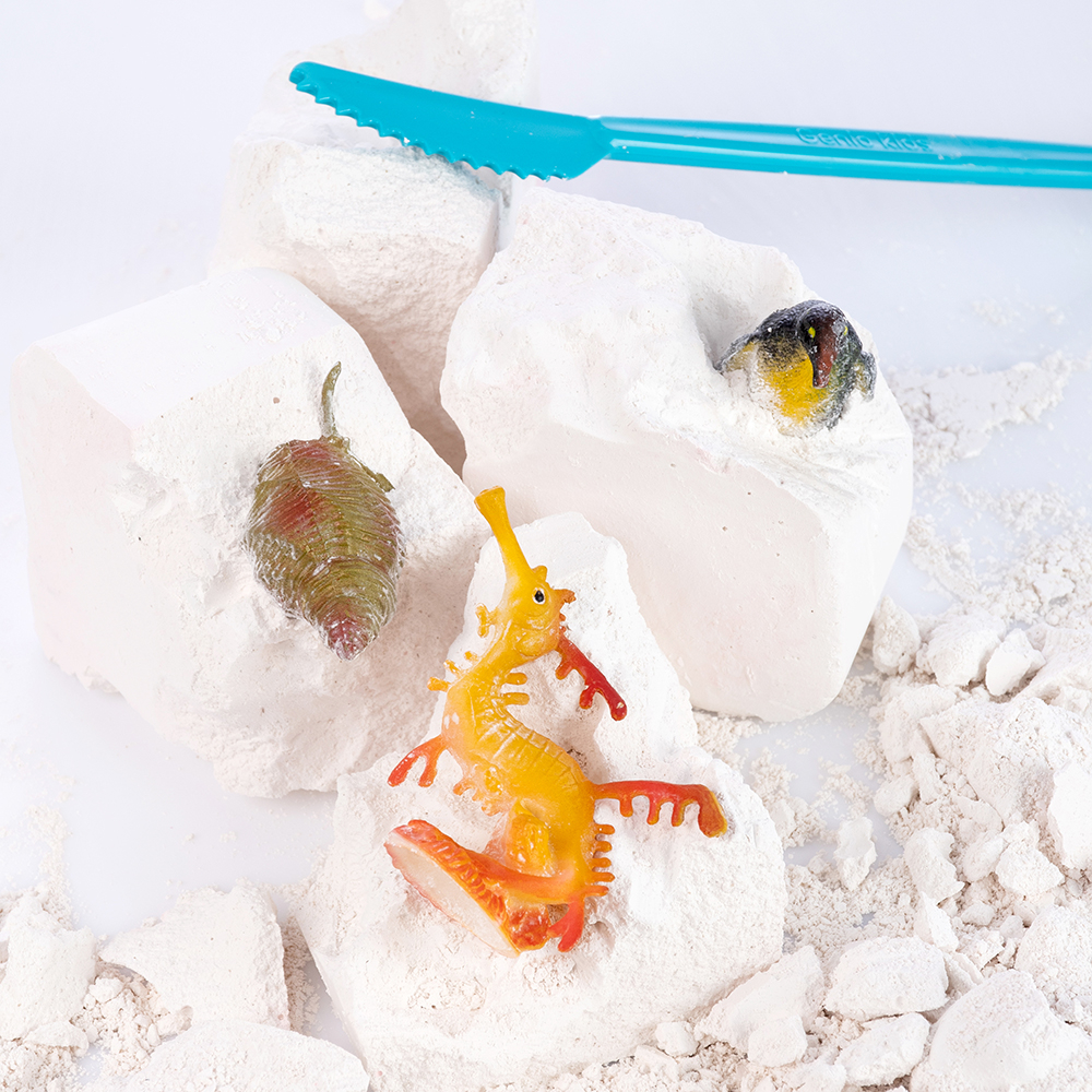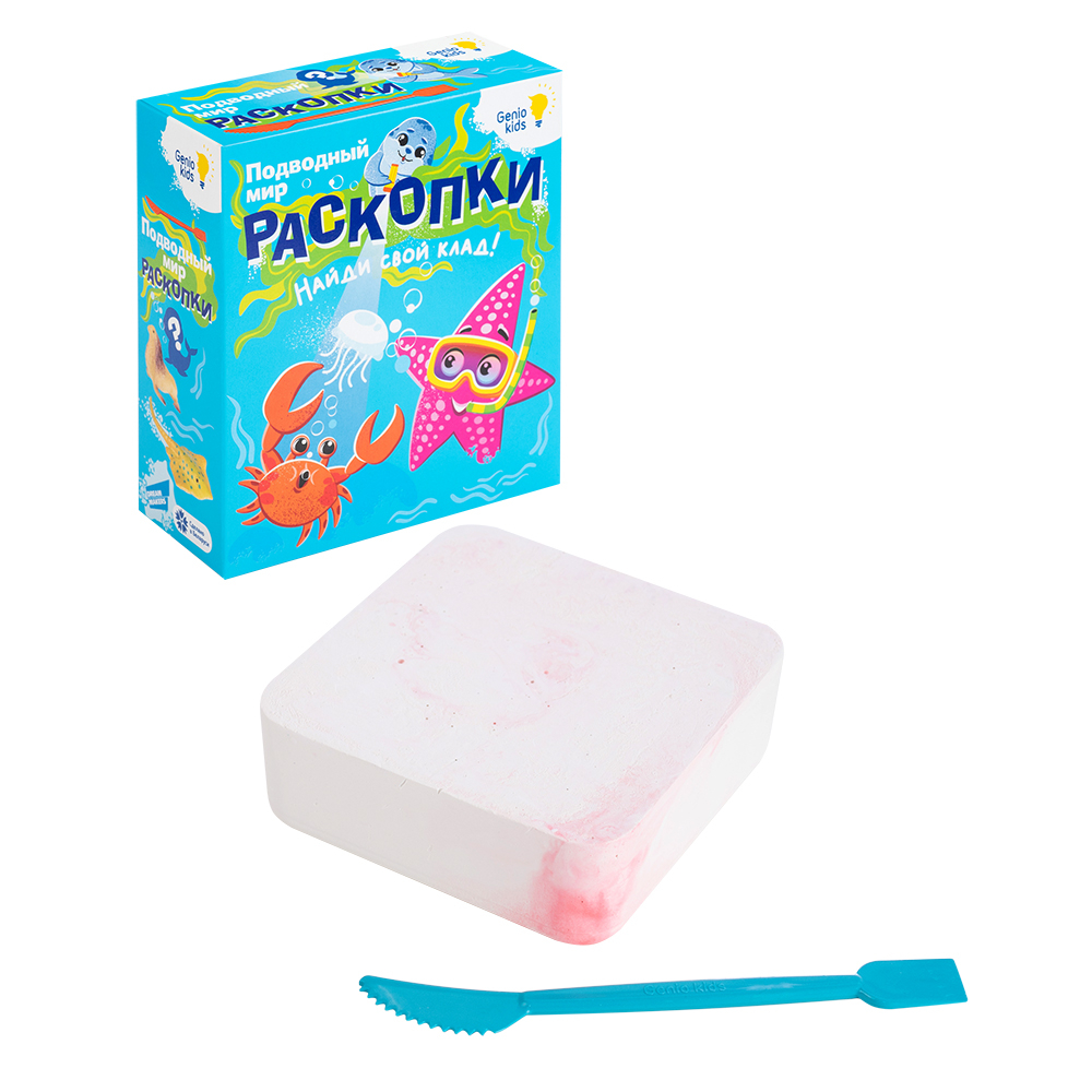 Брусок, в котором спрятано 3 фигурки морских обитателей, 1 стек для раскопок