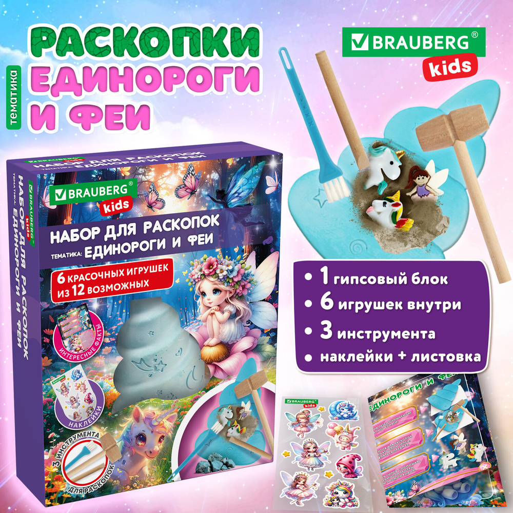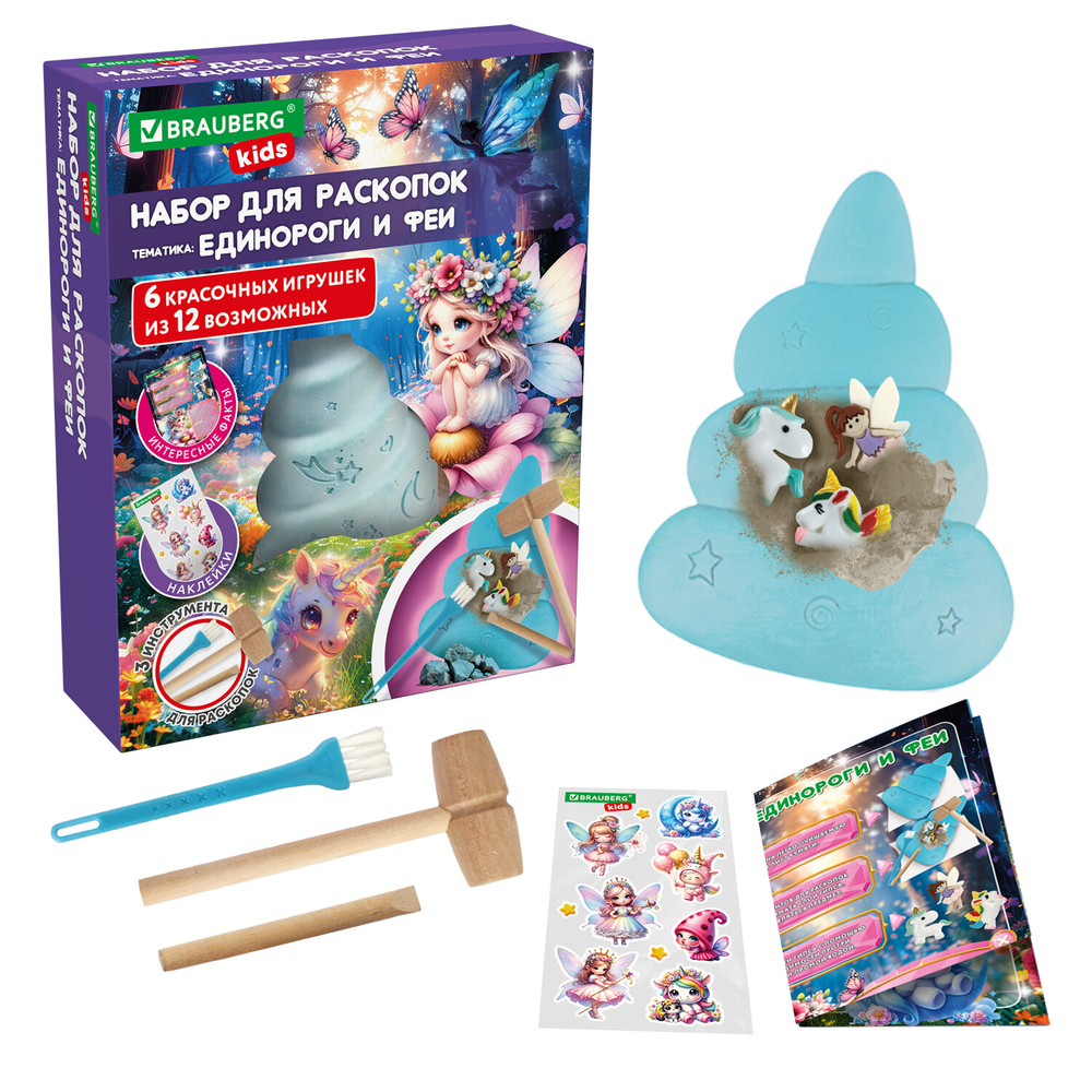 Открой дверь в мир чудес и магии. Приготовься к приключению! Наш набор для раскопок перенесет тебя в сказочную страну, где среди сверкающих облаков и радужных вихрей спрятаны самые прекрасные существа – грациозные единороги и очаровательные феи.