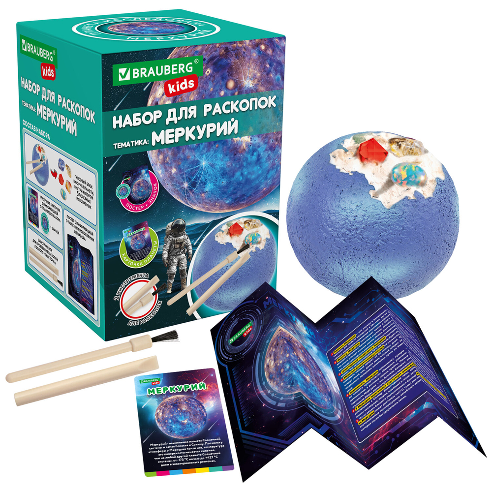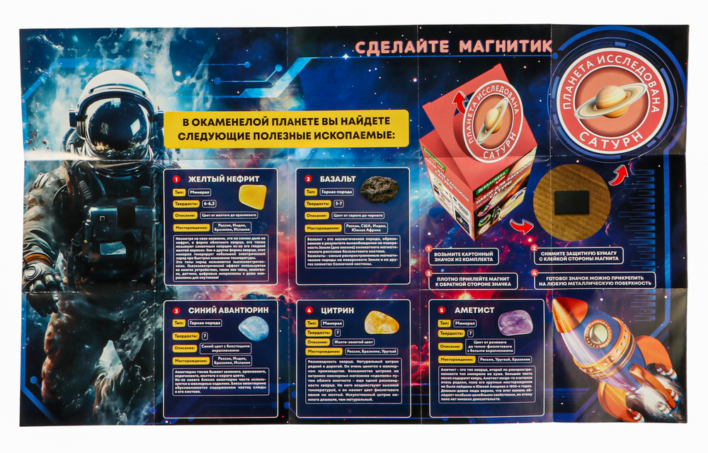 Этот набор погружает ребенка в удивительный мир астрономии, геологии и истории покорения космоса.