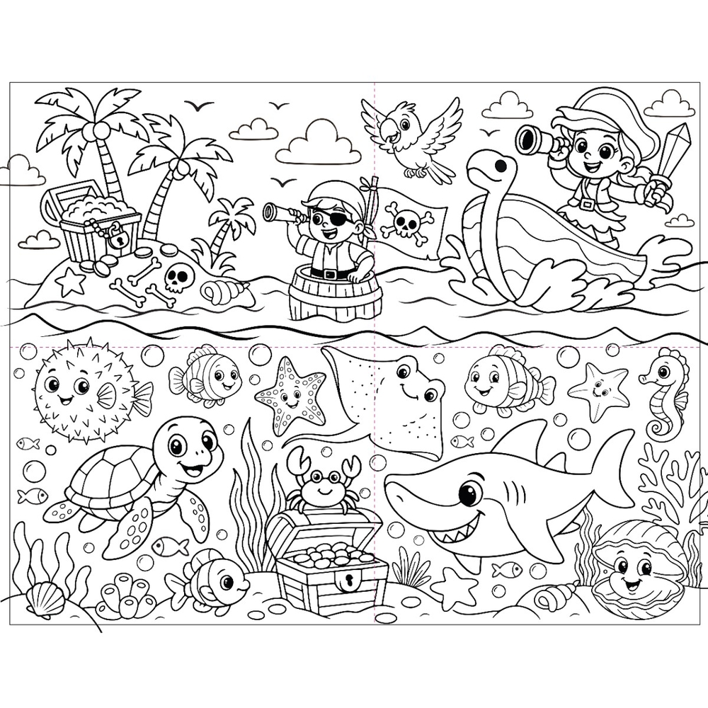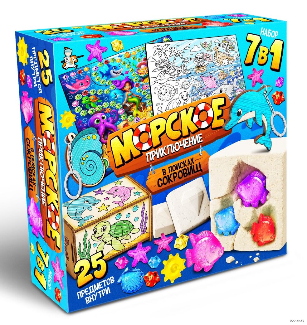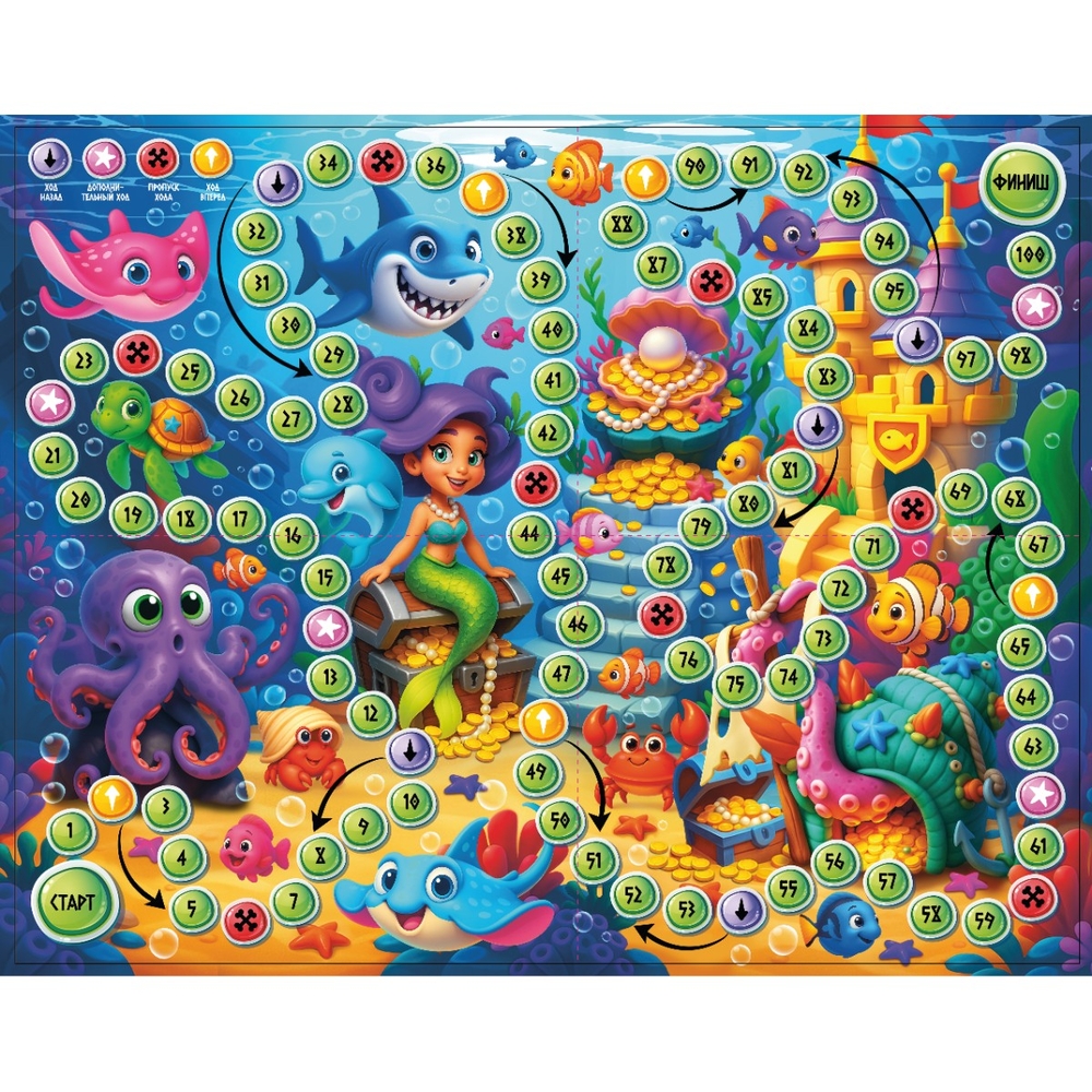 Но приключения на этом не заканчиваются! Найденные фигурки морских обитателей тут же превращаются в фишки для увлекательной игры-ходилки, которая входит в комплект. Вместе с ребенком вы сможете разыграть множество сценариев, развивая логику, стратегическое мышление и навыки общения. А на обратной стороне игрового поля – большая раскраска, которая позволит юному художнику воплотить свои самые смелые цветовые фантазии.