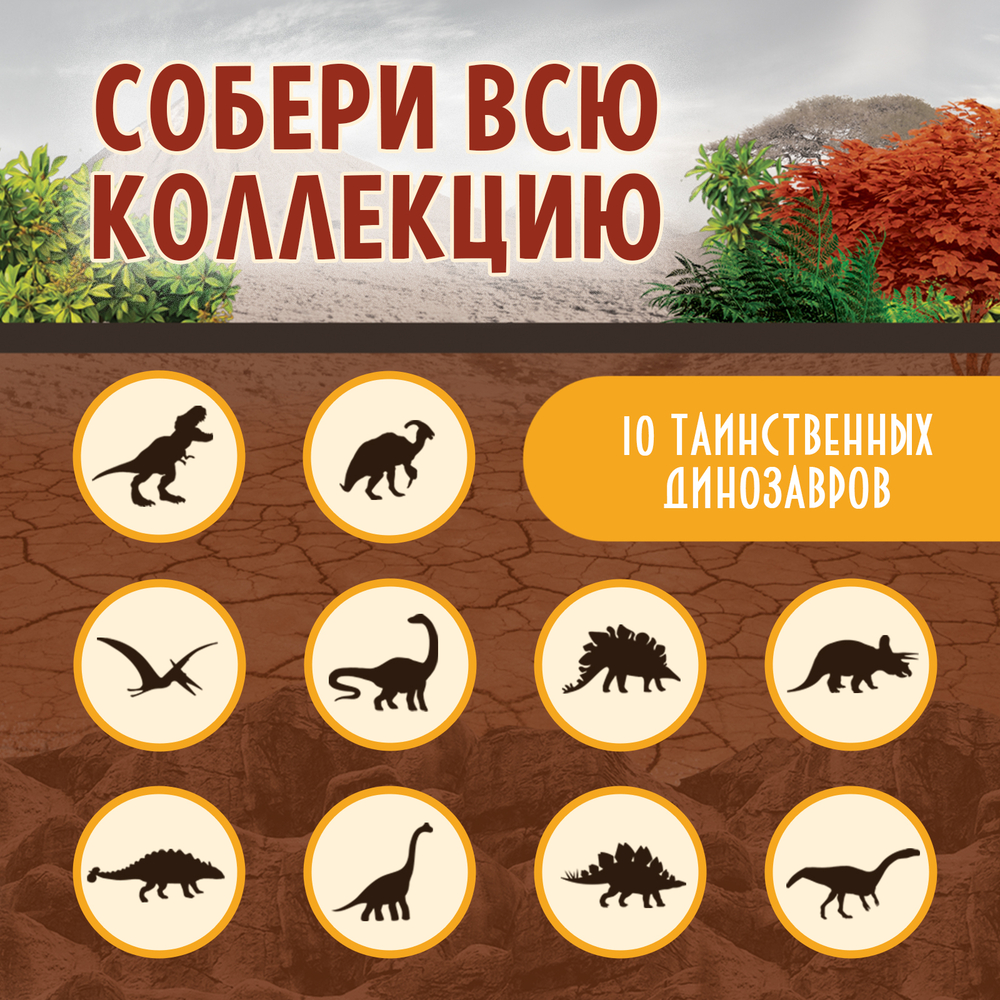 Внутри яйца спрятана фигурка останков динозавра. Без повторов. Маленький исследователь сможет собрать целую коллекцию древних рептилий. Это занятие пробудит интерес к палеонтологии и истории, вдохновит детей на дальнейшее изучение окружающего мира.