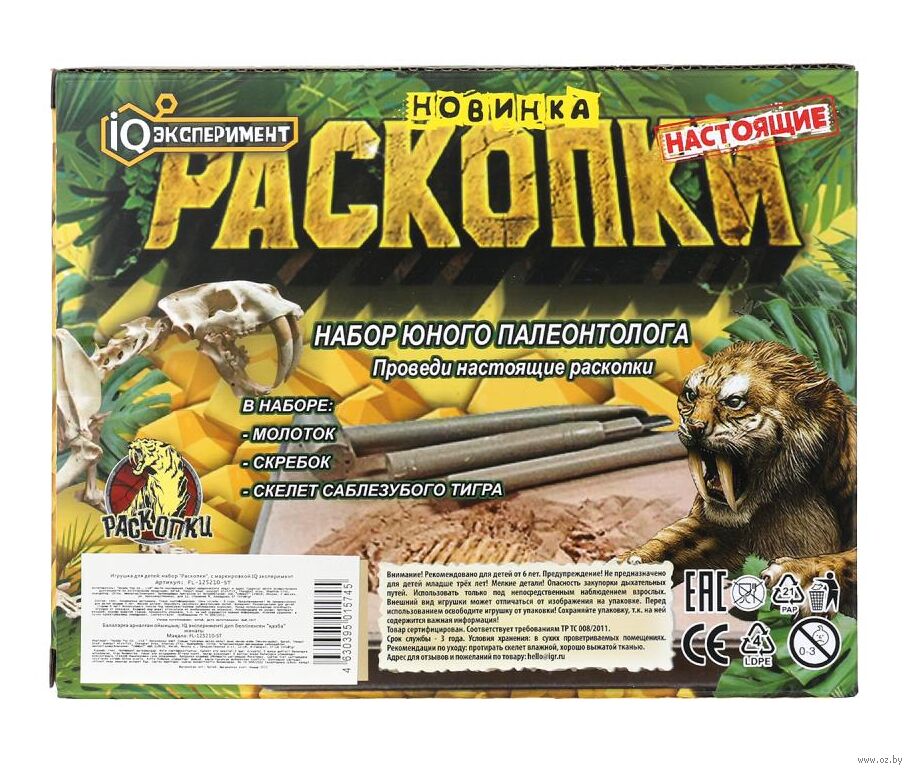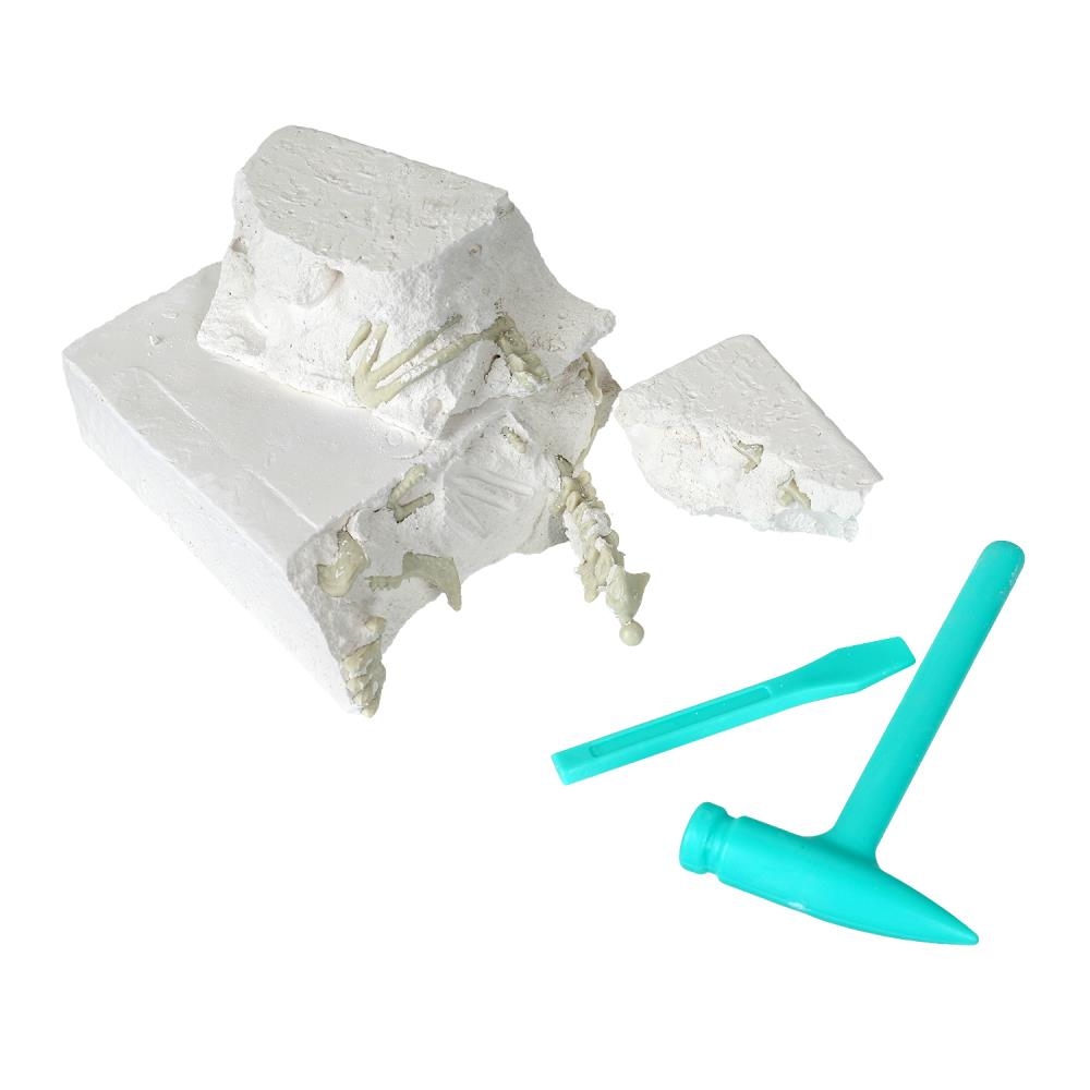 Маленькому исследователю предстоит принять участие в настоящих раскопках: он будет самостоятельно откалывать гипс, извлекать и очищать скелет древнего животного, используя специальные инструменты. А после раскопок ребёнок сможет использовать очищенную фигурку в своих играх.
