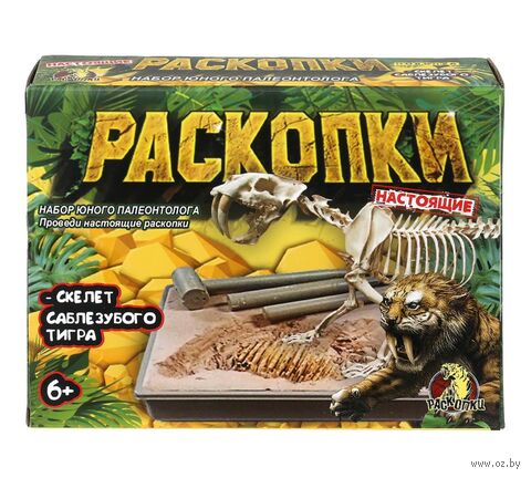Игровой набор "Скелет саблезубого тигра" непременно понравится юным палеонтологам.