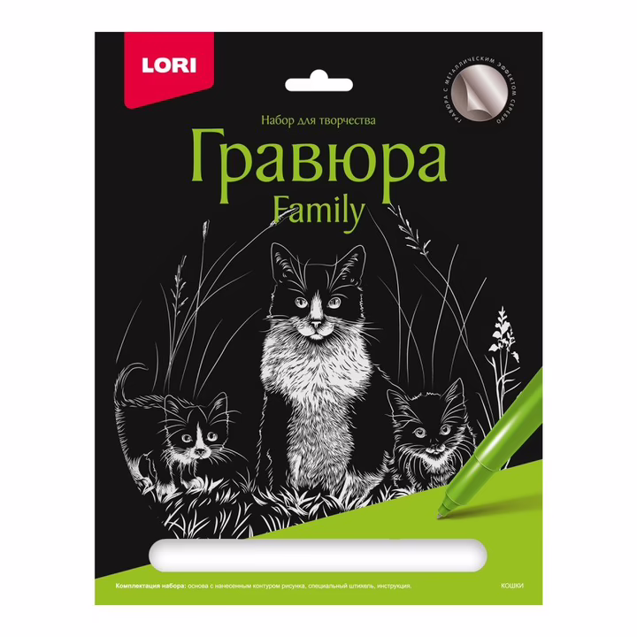 Гравюра – особый вид графического искусства. Сцарапывая верхний слой гравюры специальным штихелем, входящим в набор, ребёнок может самостоятельно создать настоящее произведение искусства и почувствовать себя гравером.