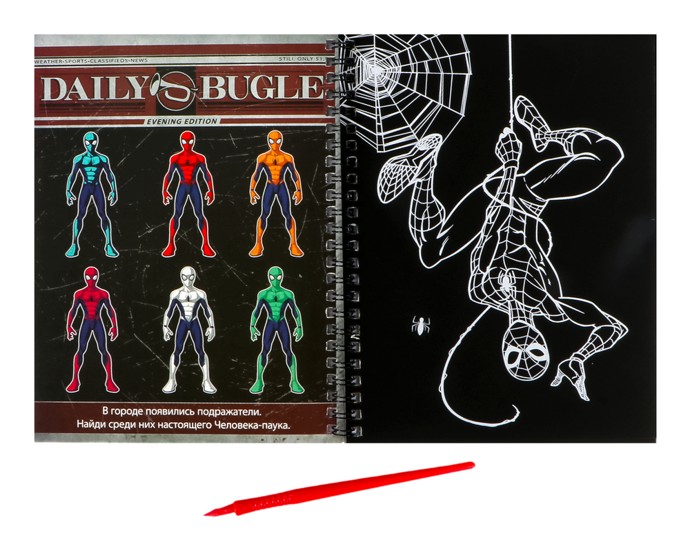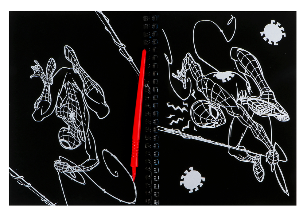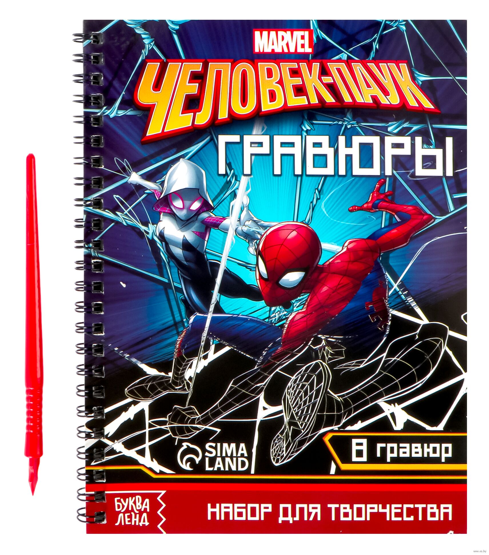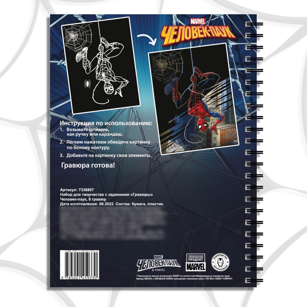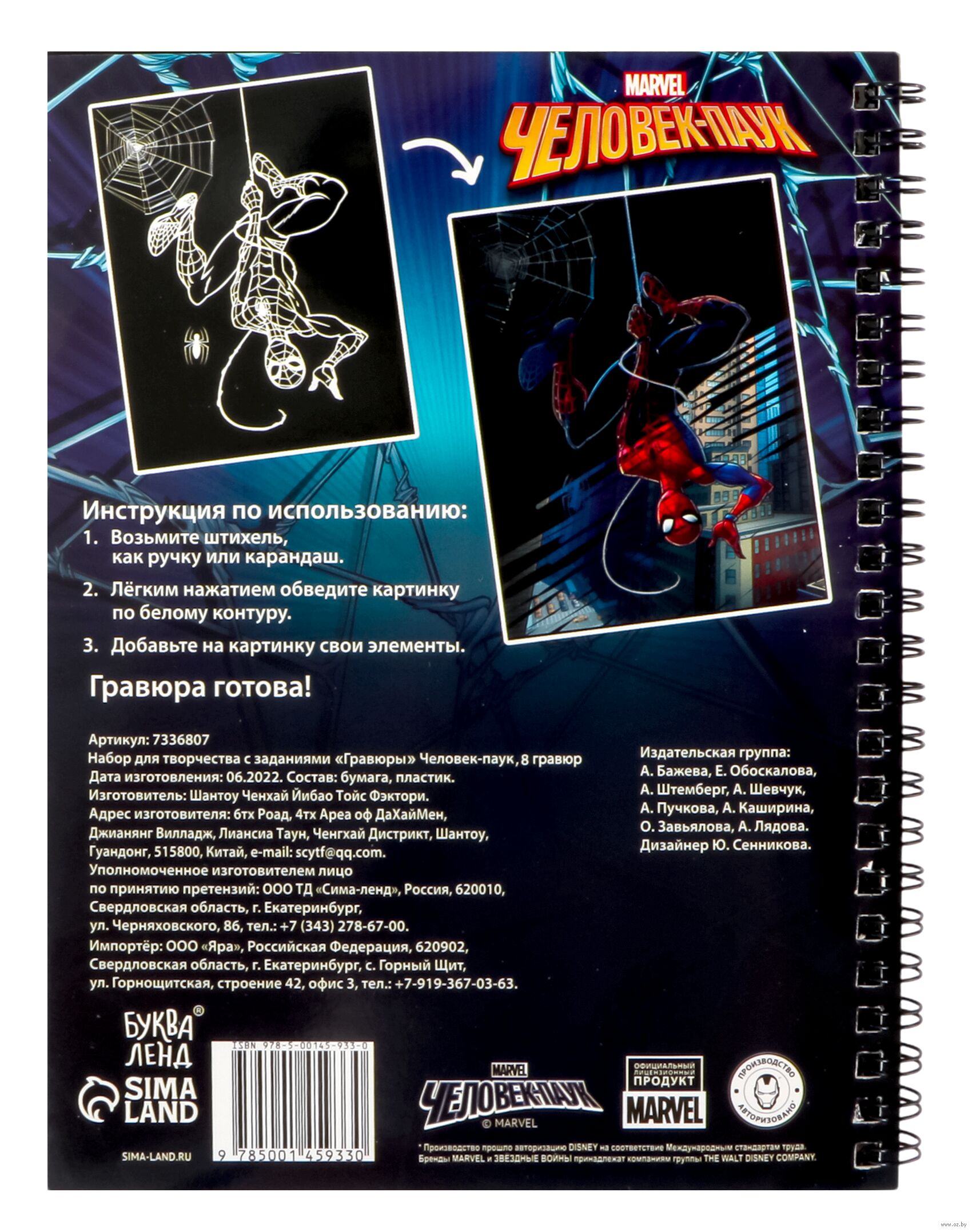 Набор гравюр – это безграничное поле для творчества! В вашем распоряжении целых 8 плотных листов с крупными рисунками любимого Человека-паука!