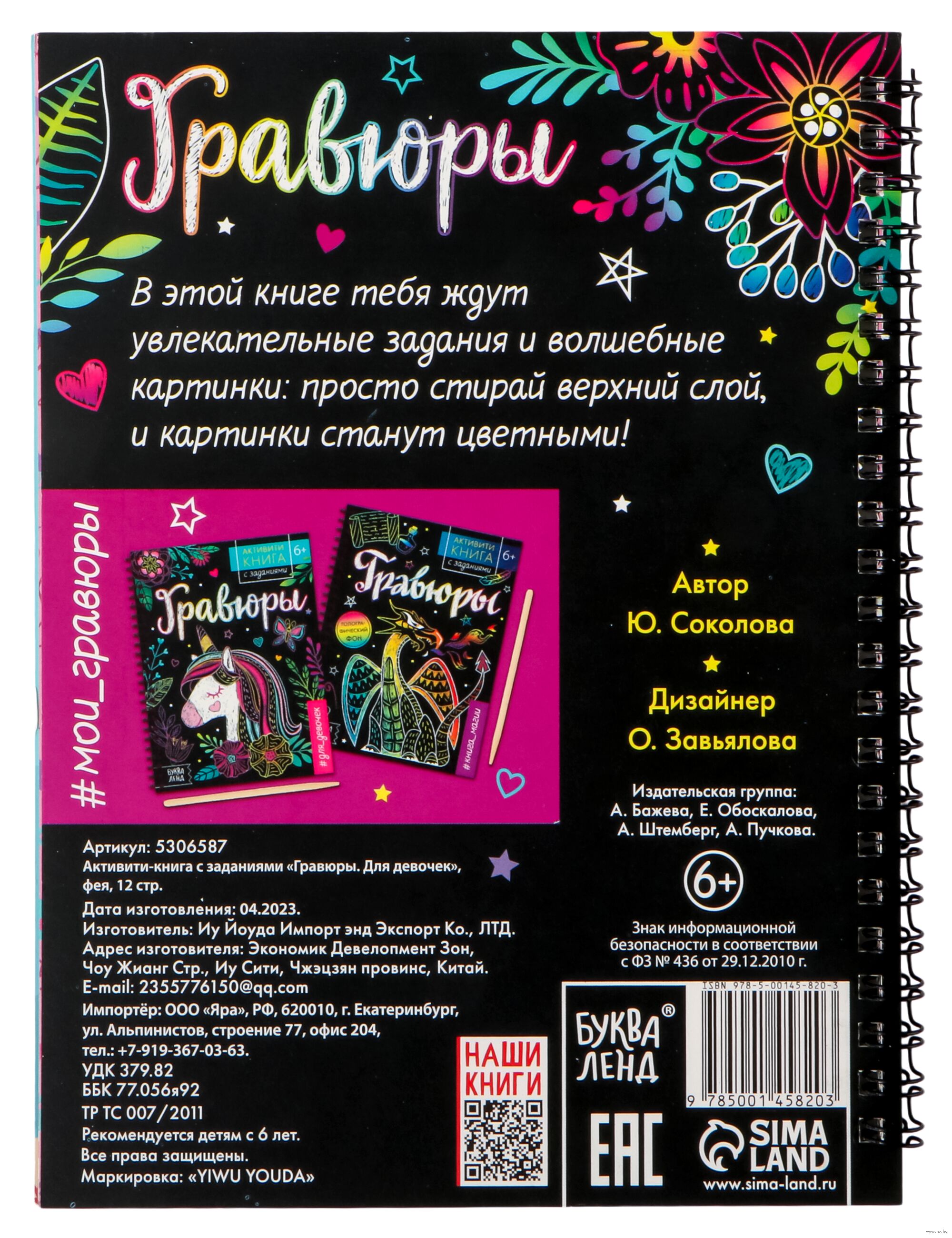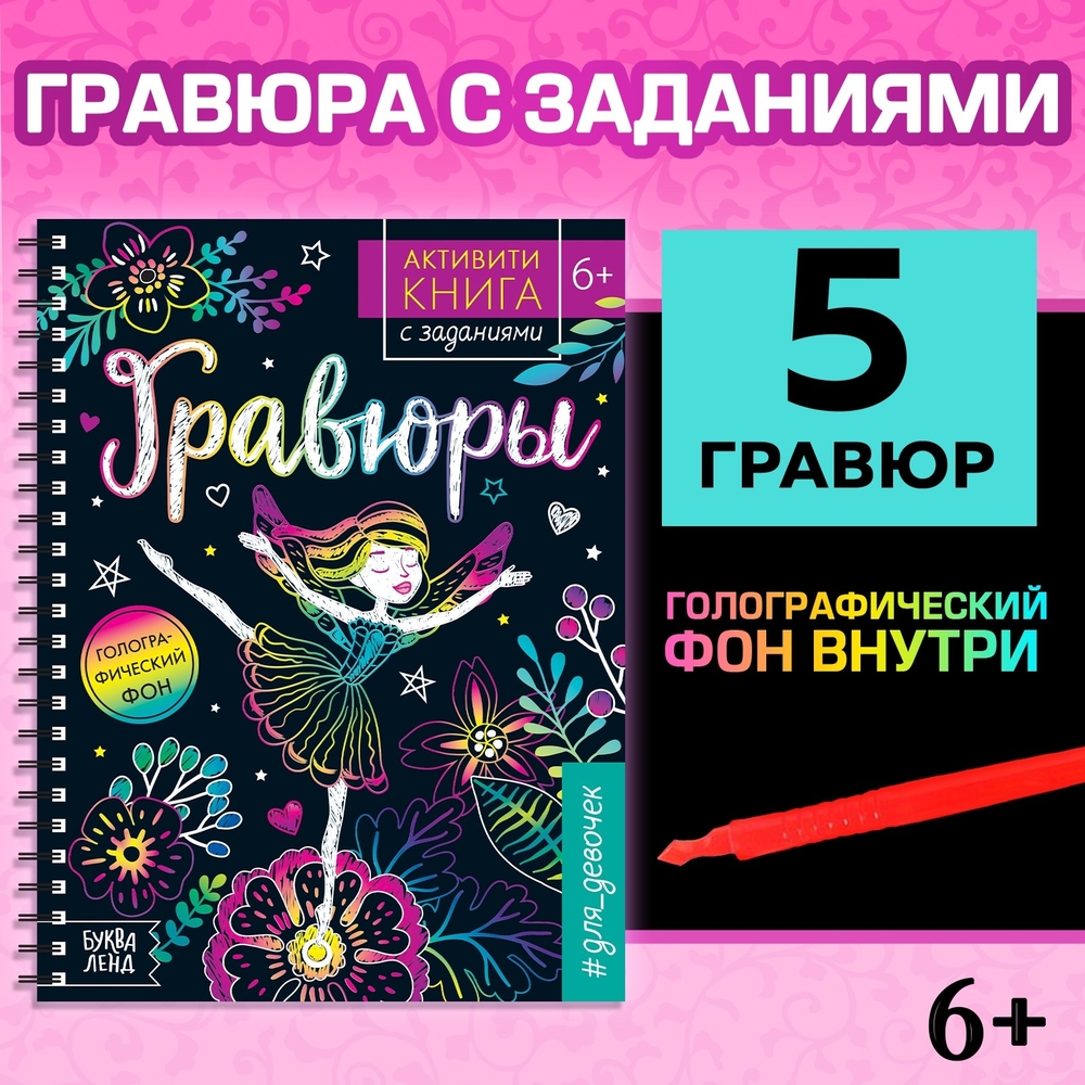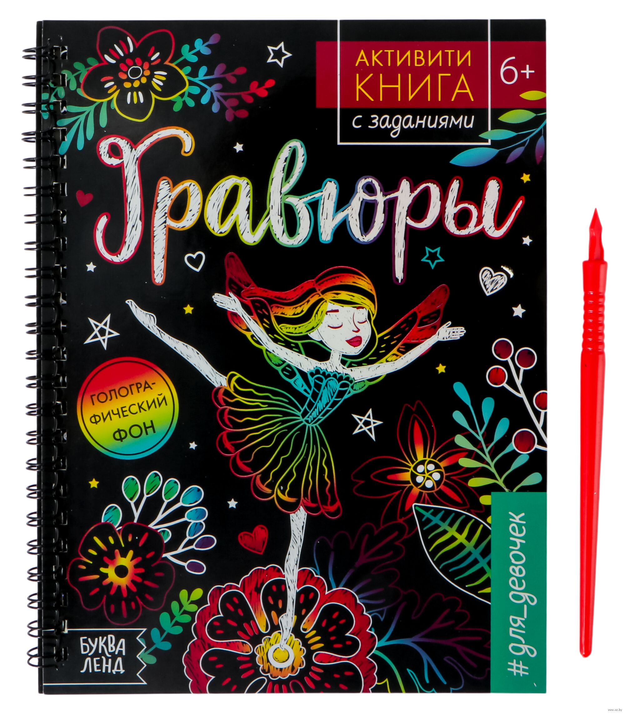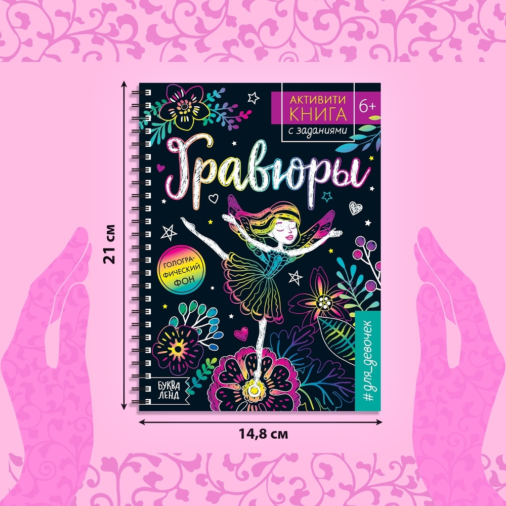 Активити-книга с гравюрами подойдёт в качестве презента, чтобы порадовать ребёнка или поощрить за успехи. Творчество подарит вашей девочке радость, станет любимым хобби, поможет отвлечься от гаджетов и провести время с пользой.
