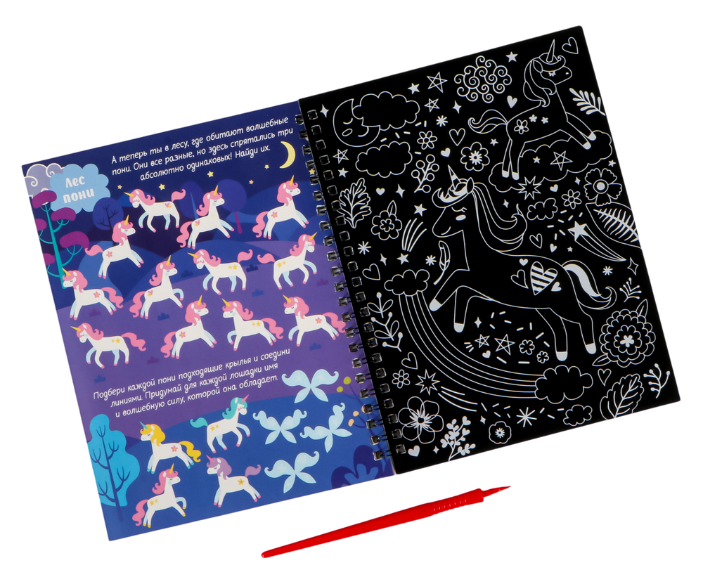 Яркая активити-книга с увлекательными заданиями для девочек поможет ребёнку скоротать время и провести его с пользой. С помощью пластикового штихеля девочка будет стирать специальный слой, за которым скрываются красочные картинки с голографическим фоном! 5 красивых гравюр не дадут заскучать, потренируют мелкую моторику и творческое мышление.
