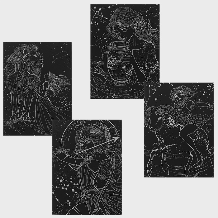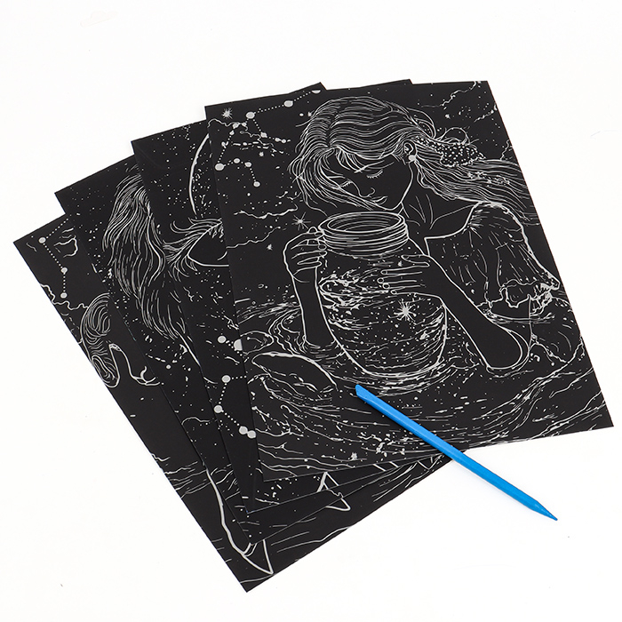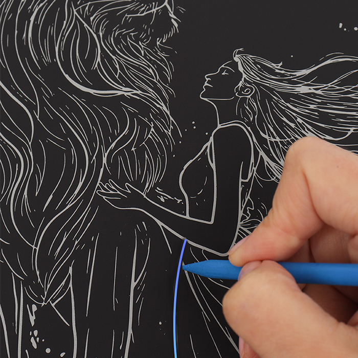 Способствует развитию мелкой моторики, фантазии и творческих навыков. Контур рисунка уже нанесен на основу, необходимо только процарапать изображение специальной палочкой-стилусом.