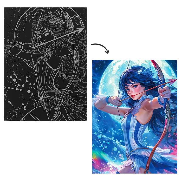 Особенность набора – готовое изображение светится в темноте! Просто зарядите гравюру под любым источником света и чем дольше зарядка, тем ярче будет свечение.